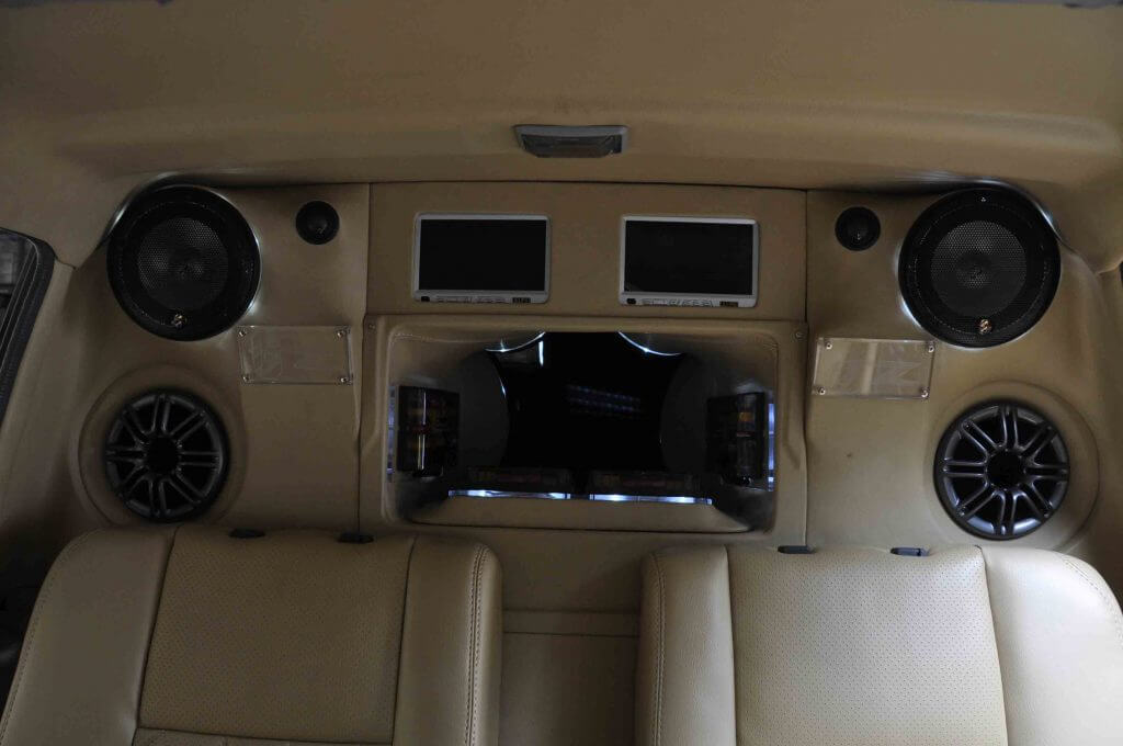 Sejumlah 7 monitor telah digunakan di dalam kereta ini. 1 unit di bahagian dashboard, 2 unit di tempat headrest, 2 unit di bahagian tengah dan 2 unit lagi di bahagian ruang letak barang. Ini bagi memenuhi kriteria kemampuan sebuah sistem talaan car theatre.