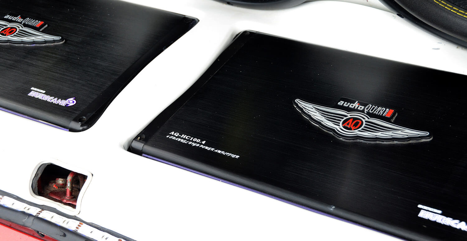 Dengan keupayaan sedemikian rupa, rupa-rupanya sistem kereta ini masih belum lengkap. Pemiliknya mahukan kesempurnaan dengan menempatkan komponen tambahan di bahagian but belakang. Persediaan pertama ialah tiga unit woofer America Sound yang dikuasakan seunit amplifier monoblock Coucar ditempatkan dalam sebuah kotak buatan kayu yang dilapik PVC berwarna putih. Rekaan dalam but ini sebenarnya bersambung dengan bahagian belakang sebagai satu unit utama yang kini ditambah lagi dengan sepasang monitor TFT yang sama.