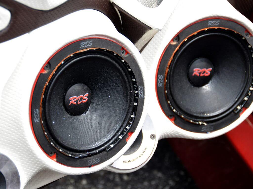 Rekabentuk hud belakang jenis liftback seperti Saga ini memberi kelebihan ruang yang ketara untuk dimanfaatkan dengan sambungan speaker tambahan. Perumah untuk 4 unit mid dan 3 unit tweeter jenis horn dari Audio Quart ini juga dibuat dengan begitu teliti menggunakan konsep yang sama, warna putih dan juga rekabentuk yang ekstrem. Kesemua speaker ini dipacu oleh seunit lagi amplifier 4 channel Audio Quart atau lebih dikenali sebagai AQ di kalangan kaki-kaki audio.