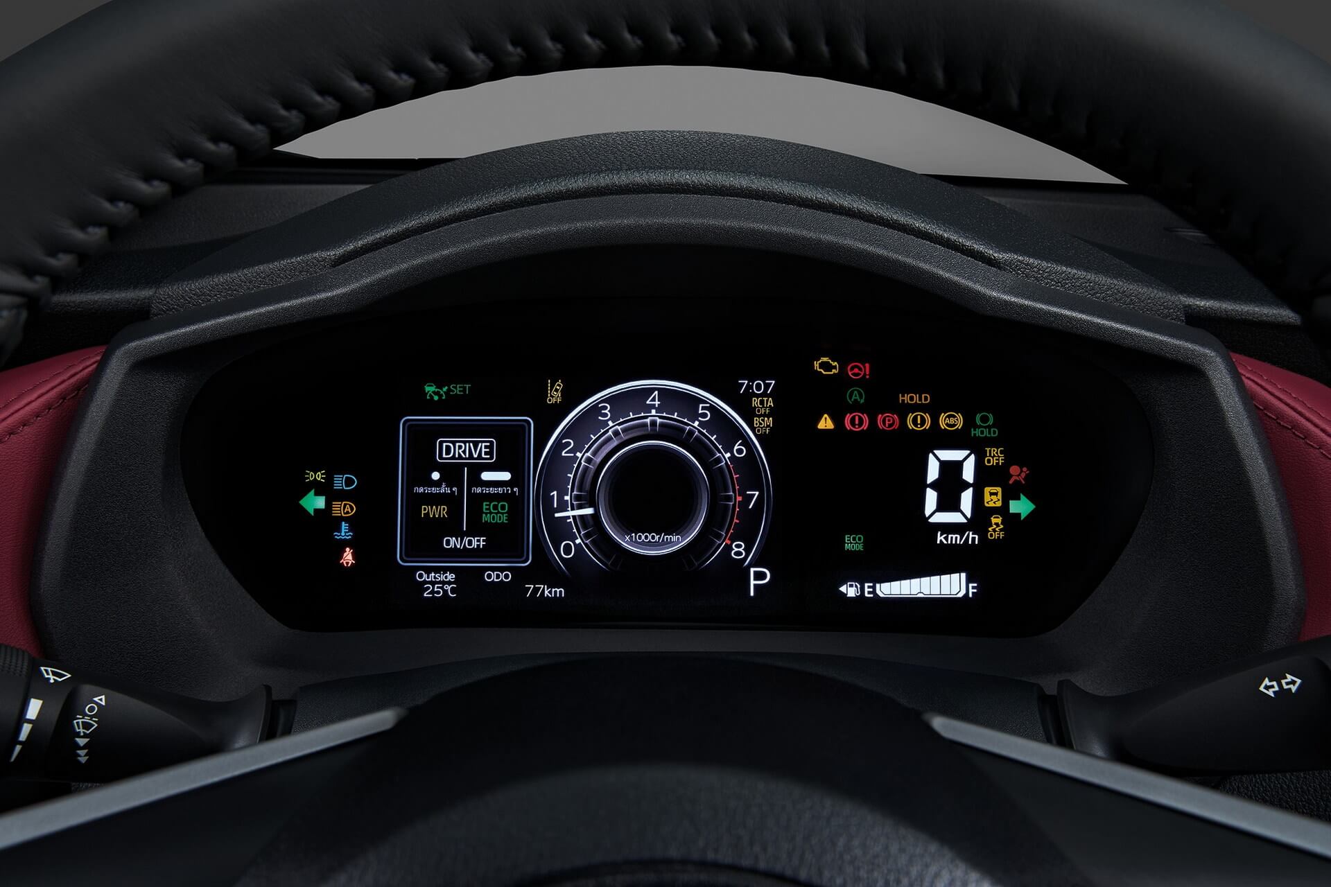 Di bahagian dalam kabin, rekaannya tampil agak moden untuk kenderaan segmen ini. Dashboard tampil lebih ringkas dan dihiasi material premium untuk upholsteri seperti kulit sintetik berwarna merah. Skrin sesentuh infotainmen 9-inci sesuai untuk semua ciri-ciri ketersambungan moden, dipadankan dengan kluster instrument semi digital 7-inci di bahagian belakang stereng baharu dengan beberapa butang.