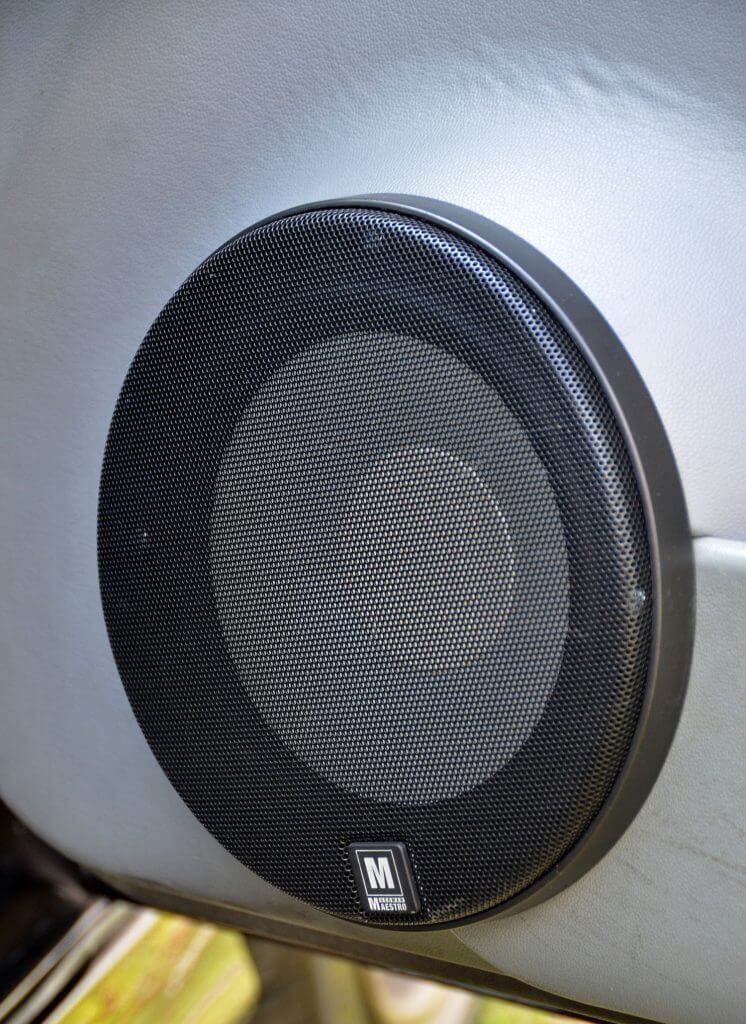Seperti yang dilihat pada kabinnya, di penjuru tiang A ialah sistem 3-way yang menampilkan set speaker komponen German Maestro dari siri M-Line; MS 654010. Ia terdiri dari 2 unit mid 6”, 2 unit speaker 4” dan 2 unit tweeter. Rekaan perumah pada tweeter dan speaker 4” agak ringkas atau lebih tepatnya, tiada kerja-kerja customization yang rumit padanya. Kedua-dua speaker ini dipasangkan dalam kon masing-masing dan sebenarnya lebih bersifat ‘satelit’. Dari segi teori, ia bukanlah set-up yang bagus tambahan pula gugusan kiri dan kanan sistem ini menggunakan punca kuasa dari amplifier yang berlainan. Sudah tentulah penalaannya menjadi mimpi ngeri.