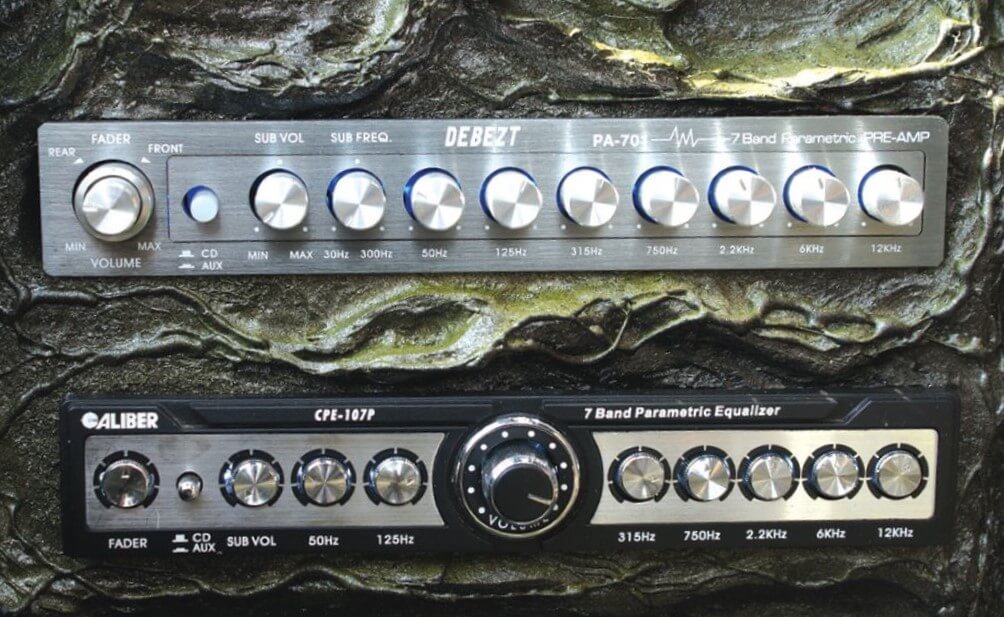 Seterusnya, isyarat yang dipancarkan menerusi pemain utama tadi akan disambut pula oleh dua unit pre-amp. Pre-amp Debezt PA-701 dan pre-amp Caliber CPE-107P. Di bahagian ini, saudara Zamri akan menala isyarat yang diterima tadi sama ada untuk mengurangkan fader ataupun membuat pengubahsuaian pada isyarat sebelum dihantar pula kepada stesen berikutnya, amplifier. Setelah selesai menjalani proses ini, maka isyarat yang telah menjalani proses tadi akan dihantar pula kepada amplifier.