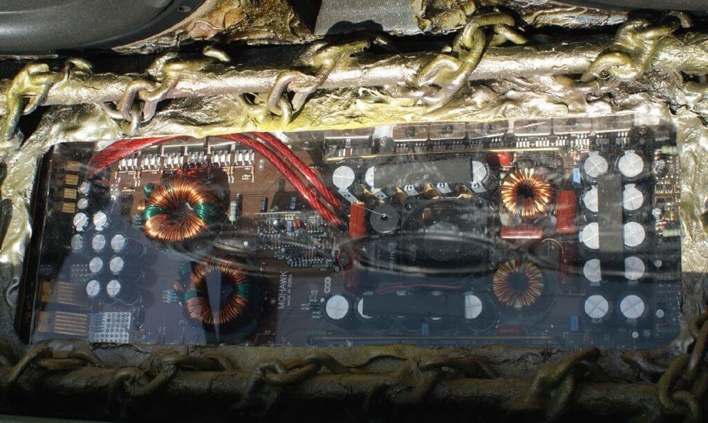 Bagi melengkapi senarai jentera I.C.E milik saudara Zamri ini, 2 unit woofer 15” yang juga dari jenama Silver Hawk menjadi pilihan beliau. Bagi memastikan jumlah isyarat yang diperlukan untuk memacu kedua-dua unit woofer ini, beliau memilih pula jenama yang juga setaraf dengan kehebatan Silver Hawk, Mohawk. Amplifier monoblock Mohawk ini membesarkan isyarat sepertimana yang diperlukan selain berfungsi memacu woofer-woofer tersebut.