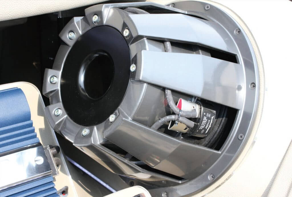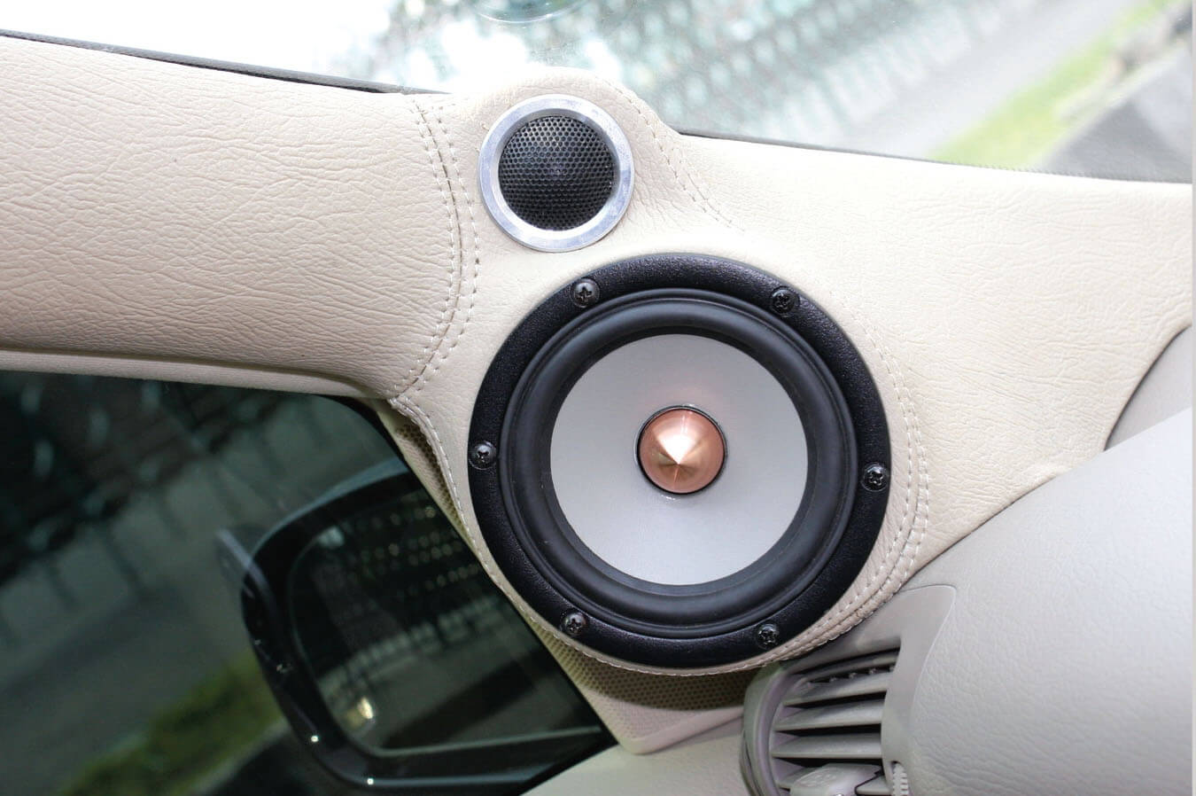Barisan speaker hadapan terdiri daripada 2 unit mid bass 6.5” Fabulous Acoustics, dengan custom gelas fiber dan speaker mid range 4” SEAS Excel. Digabungkan pula bersama tweeter audio berdefinisi tinggi RES 1” dalam penjajaran masa mekanikal custom A Pillar untuk mendapatkan 1 panel akustik yang sama.