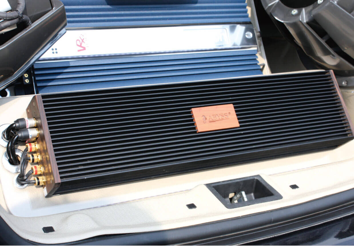 Dalam sistem I.C.E pada kereta Mercedes ini, 3 unit amplifier telah digunakan. Satu unit amplifier 4 channel Abyss Mini AA digunakan untuk memacu speaker mid range SEAS Excel dan tweeter RES. Amplifier ini agak unik berbanding amplifier yang sedia ada di pasaran kerana badannya dibina dari kayu. Selain amplifier ini, satu unit amplifier 2 channel Audison VRX 2.400 pula digunakan untuk memacu mid bass 6.5” Fabulous Acoustics.
