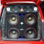 Sebanyak empat unit woofer Adams Digital Energy Series EX1000 dipasang di bahagian belakang Kenari ini. Empat unit woofer 12” bukanlah satu masalah untuk sebuah Kenari yang tinggi. Ia dipasangkan dalam kekotak binaan khas yang ditebat sepenuhnya. Menguasakannya ialah seunit amplifier monoblok juga dari Energy Series, EAM-2400.1D. Produk Adams memang terkenal dengan keupayaan SPL dan mana-mana amplifier kelas D mereka dikatakan antara yang paling stabil dalam industri audio SPL.