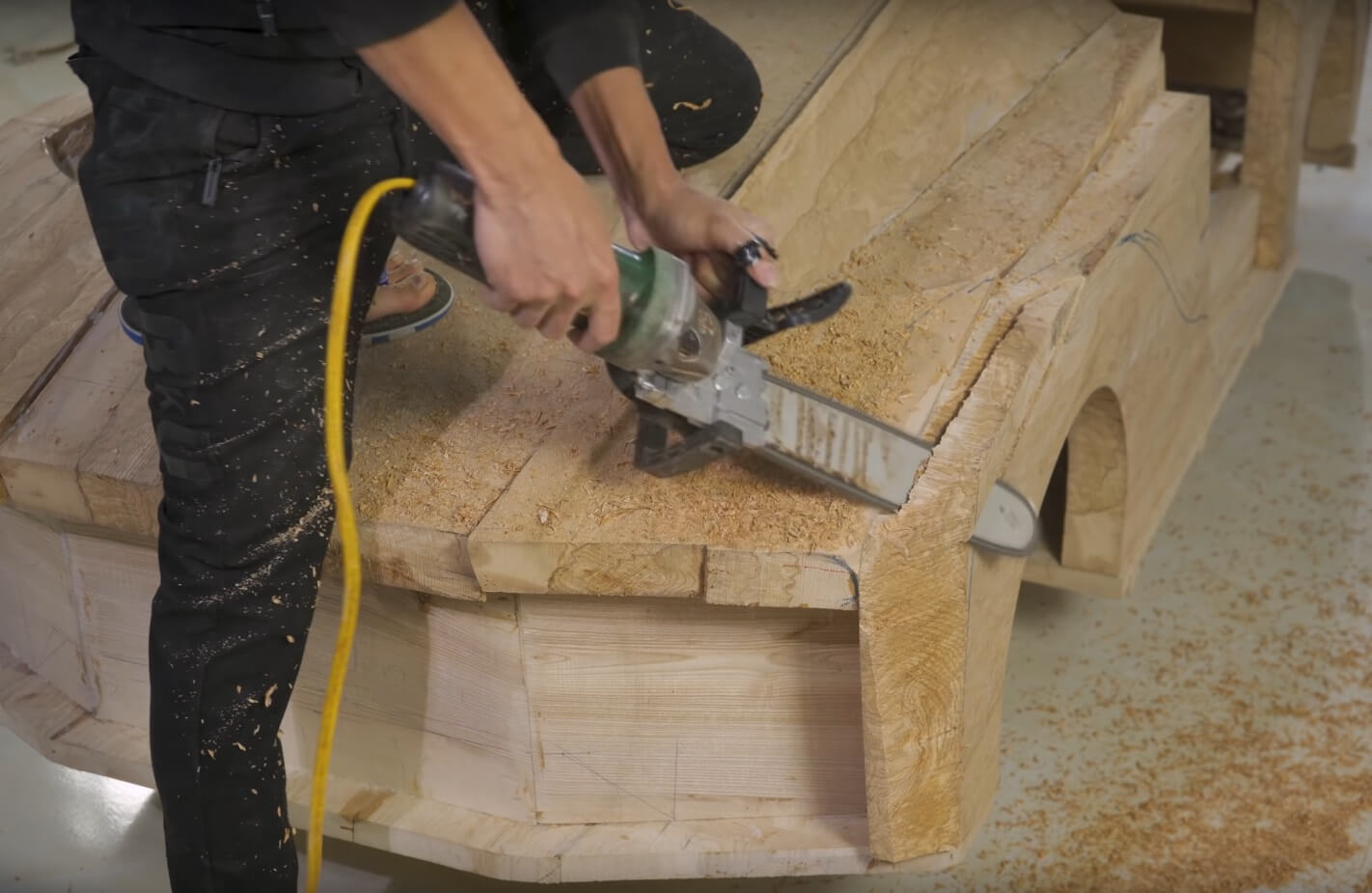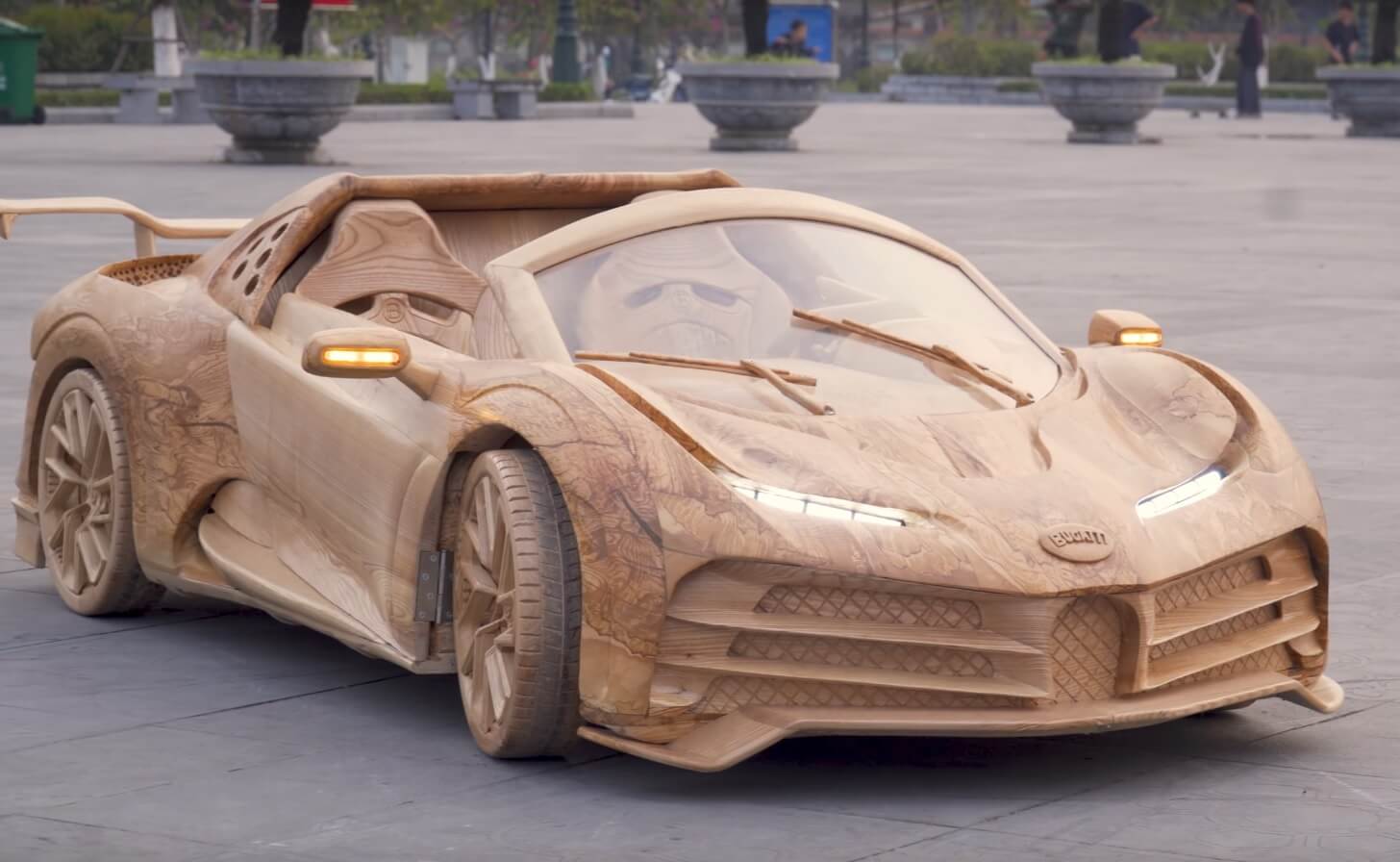 Tugasan yang paling sukar adalah untuk mengukir bentuk badan kereta ini yang agak kompleks. Tambahan pula, Bugatti benar-benar memastikan rekaan eksterior Centodieci ini berbeza dengan Chiron. Bagi membentuk rekaan ini, gergaji elektrik telah digunakan dan Youtuber ini berjaya meniru bentuk keseluruhan Centodieci sebelum membentuknya dengan lebih teliti menggunakan tukul dan pahat.