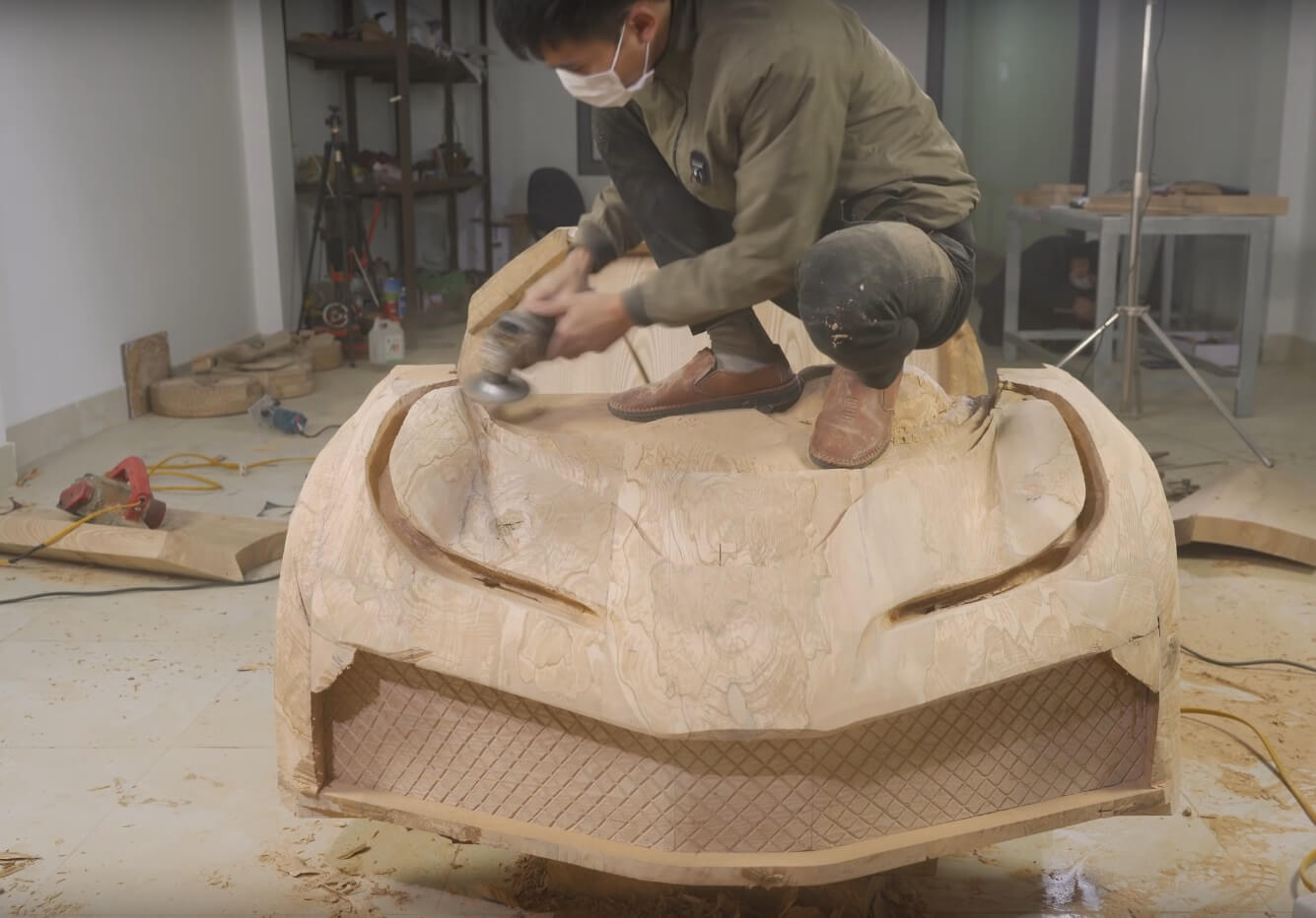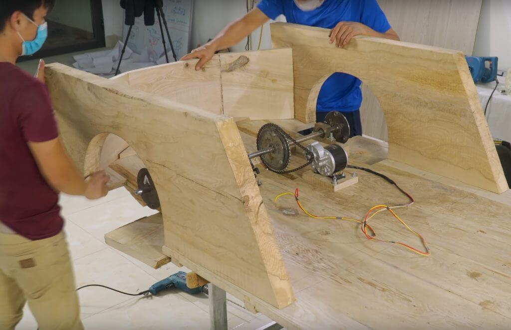 Video pembikinan kereta ini telah dikongsikan di Youtube di mana setiap proses secara terperinci ada ditunjukkan. Bermula dengan casis dari kayu, sehinggalah menjadi sebuah kereta yang diukir dengan hanya menggunakan perkakasan yang sangat ringkas dan mudah. Nampak mudah tapi ia bukan satu kerja yang senang. Apabila semua kerja ukiran dan pembinaan kereta telah siap, ia dikuasakan oleh motor elektrik dari tayar belakang.