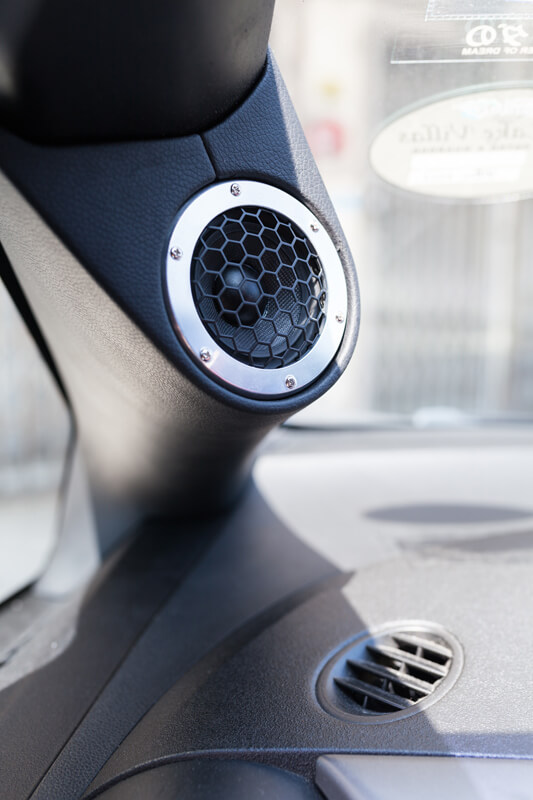 Ketiga-tiga amplifier 4 channel Dominations ES-4100 digunakan untuk memacu speaker mengikut keperluan frekuensi dan tugas yang tertentu. Baiklah, kita mulakan sistem dua hala yang dipasangkan di bahagian kokpit dan sepertimana lazimnya, 2 unit mid bass 6” dari Dominations ES61 dipasangkan di kedua-dua belah panel pintu. Manakala 2 unit mid range Dominations R51 dilekapkan di pillar A bagi mendapatkan staging sound yang tepat. Tepat dan sedap didengar. Kedua-dua jenis speaker ini dipacu oleh amplifier 4 channel tadi secara berasingan. Jelas sekali, pemasangnya tidak mahu berkrompomi dan mahukan hasil yang terbaik.