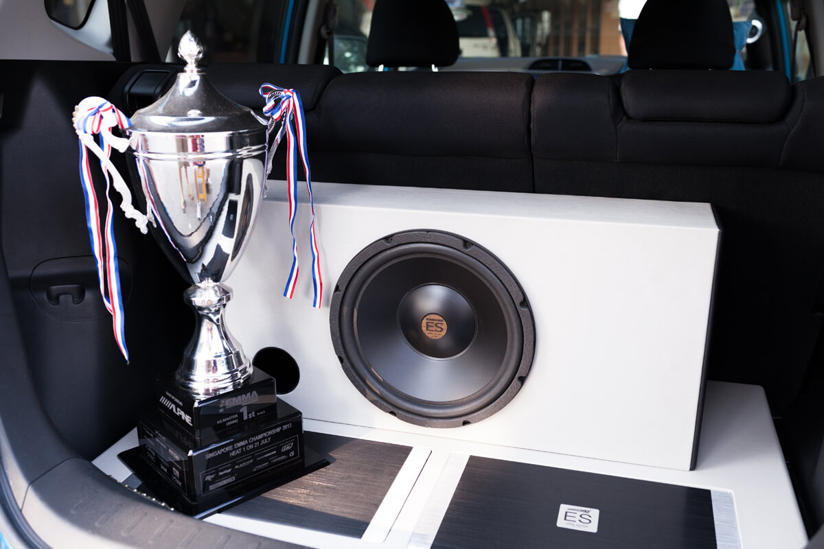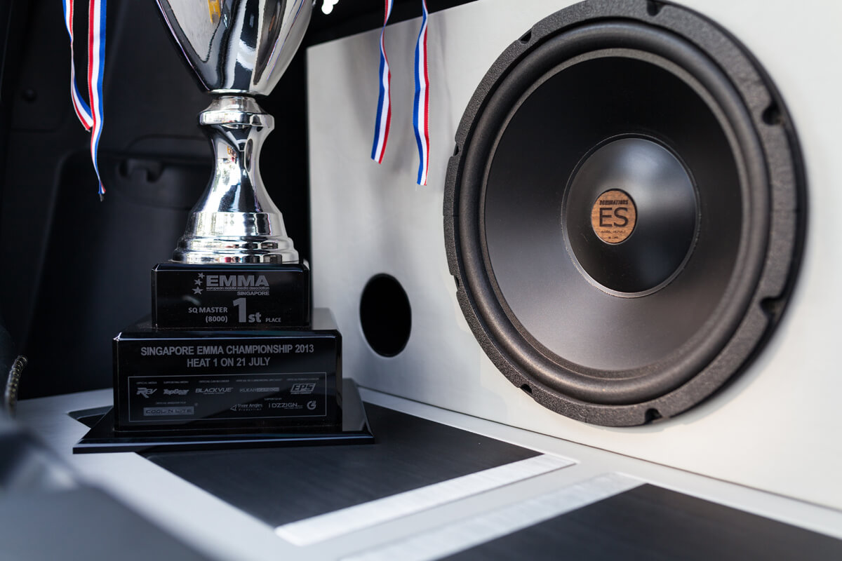 Sebelum mengakhiri sistem audio dari kereta yang berjaya mendapat nama di negara jiran ini, seunit woofer 12” Dominations ES124 digunakan dan dikuasakan oleh seunit lagi amplifier 4 channel tadi. Ditempatkan dalam perumah buatan khas, ia sengaja diletakkan di tengah-tengah bahagian bonet kereta agar bunyi yang dikeluarkan dari mulut woofer ini seimbang dan mengisi ruang legar dan memenuhi segenap ruang kereta ini. Pemilihan warna putih, menonjolkan lagi kekemasan dan sekali gus memberikan sentuhan yang harmoni. Bunyi yang memukau seakan tiada pengakhirnya dan kemasan yang sejuk mata memandang. Bukankah ianya sememangnya layak dinobatkan sebagai juara?