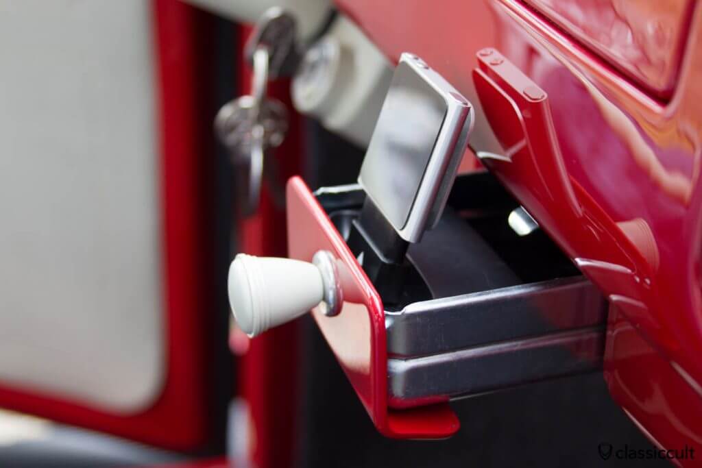 Menurut pemilik Beetle ini, beliau telah memasang penyambung pintu dengan spring yang dimodifikasikan di belakang bekas habuk rokok tadi. Dalam bekas habuk rokok itu pula, diselitkan magnet kecil yang dipasangkan untuk memastikan bekas habuk rokok itu sentiasa tertutup. Penghubung pintu dalam bekas habuk rokok itu disambungkan pula kepada 6V Bosch yang boleh menghidupkan dan mematikan radio. Sistem audio dimatikan bila-bila kunci pencucuhan dialihkan.