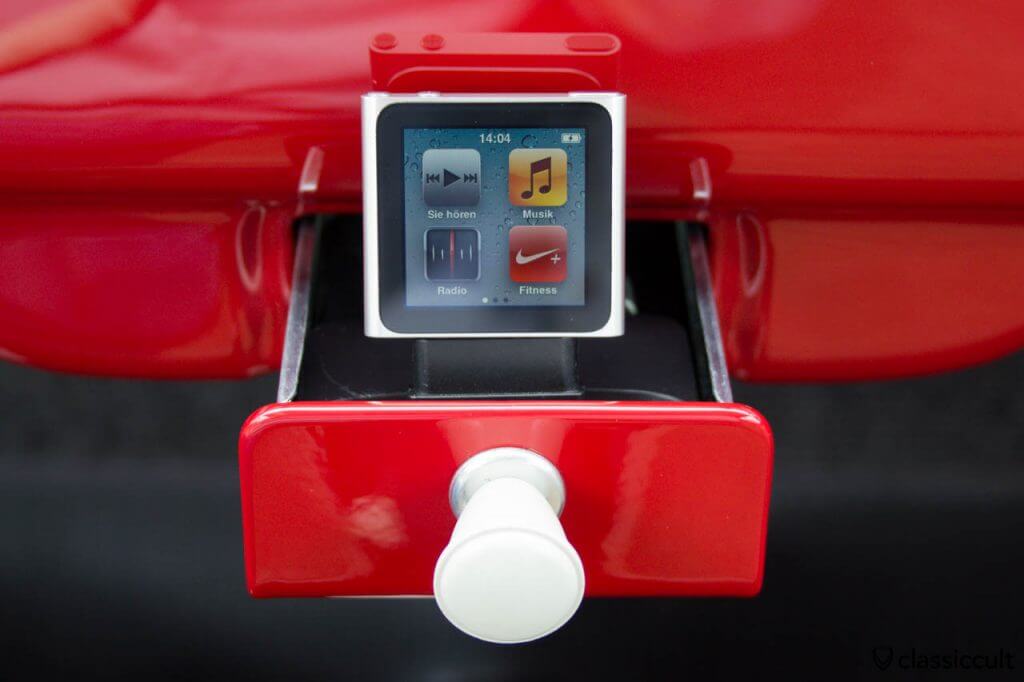 Apa yang istimewanya, stesen dok yang dijadikan sebagai pemegang tadi juga boleh mengecas iPod. Hebat, kan? Selain itu, sistem bunyi boleh dihidupkan atau dimatikan menggunakan bekas habuk rokok Volkswagen Beetle. Macam mana pulak tu?