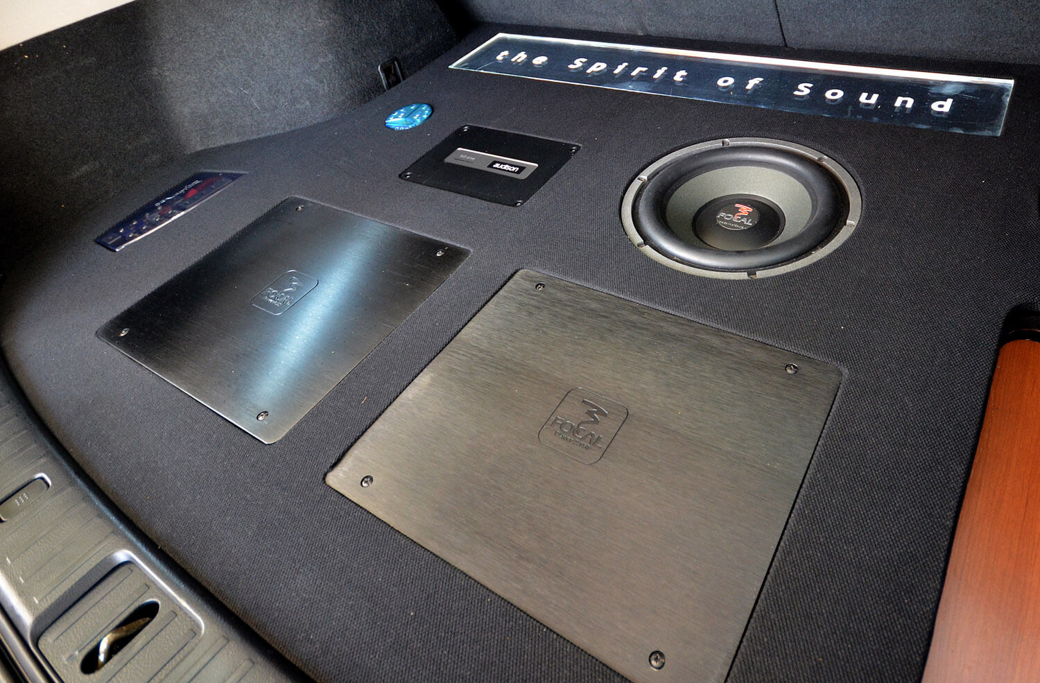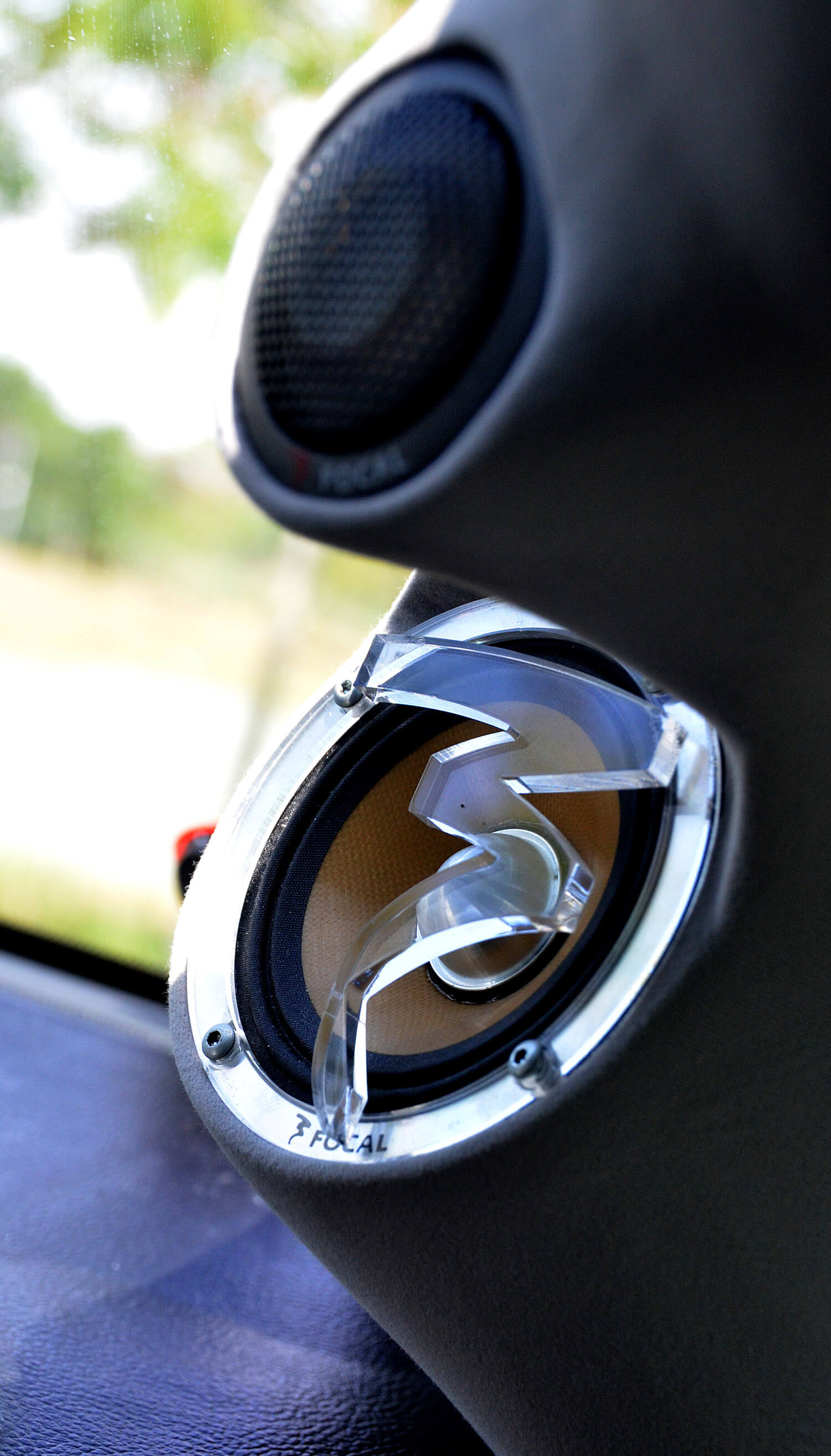 Set speaker ini terdiri dari mid 3” Focal KRX3 dan tweeter dipasang dalam perumah yang dibuat khas di pillar A. Manakala mid bass 6” Focal KR2 ini dipasangkan pula pada panel pintu asal. Tweeter mendapat suapan kuasa daripada amplifier empat saluran Focal FP 4.75 sementara mid bass memperoleh kuasa daripada amplifier Focal FP 2.150. Ya. Hanya seunit amplifier 150RMS dua saluran.