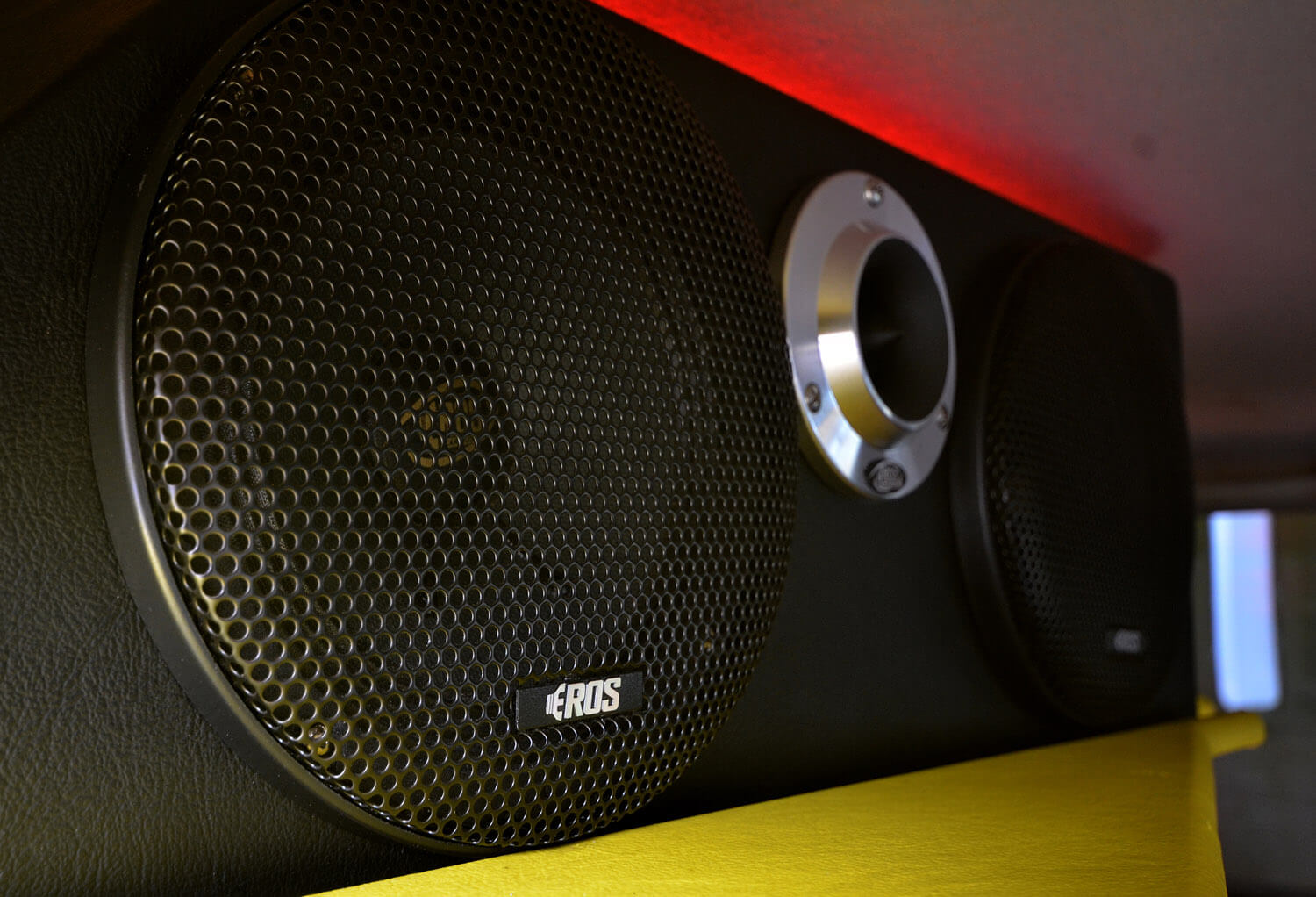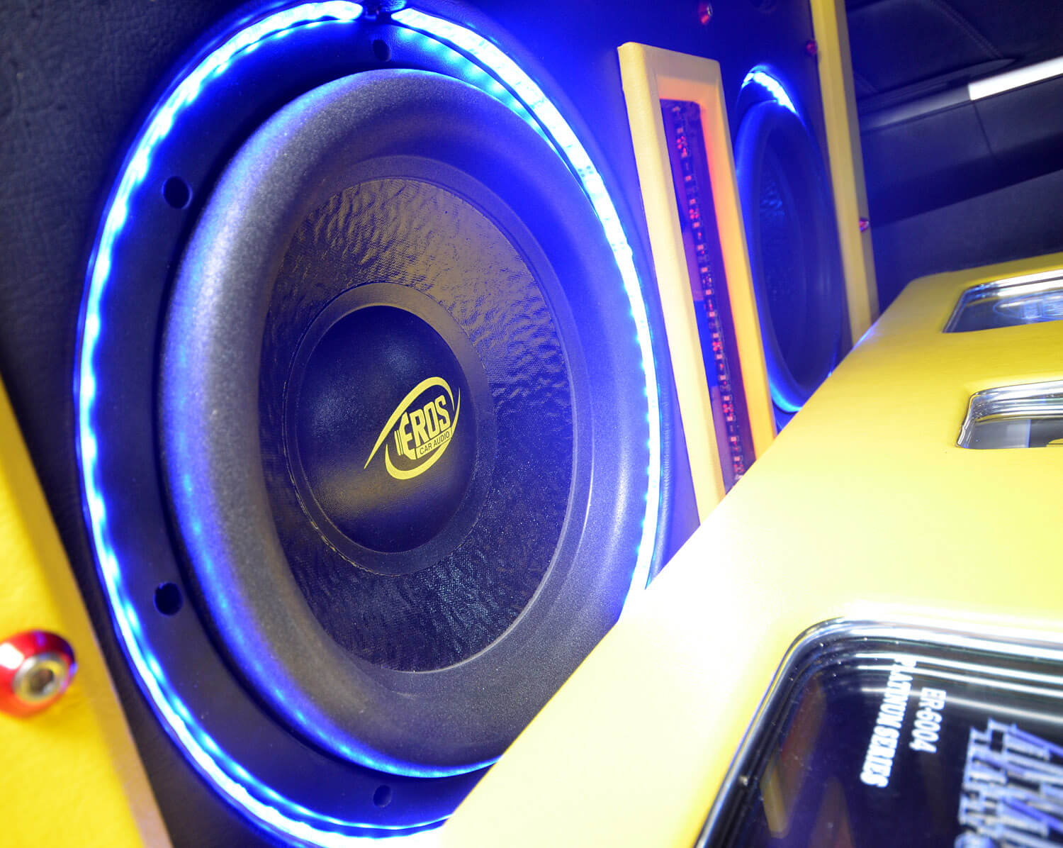 Perjalanan terakhirnya adalah set woofer yang menggunakan sistem bebas untuk keduanya. Setiap satu dari woofer 12” Eros ER-1201DVC hampir tidak berkaitan antara satu sama lain. Dari unit utama Kenwood tadi, ke pemproses digital dan dipecahkan sekali lagi kepada pre-amp 7 saluran Eros ER-S7P. Dari sini, pemisahan dibuat sekali lagi dengan menggunakan 2 unit amp monoblok Eros ER-4800 untuk menguasakan kedua-dua woofer secara bebas.