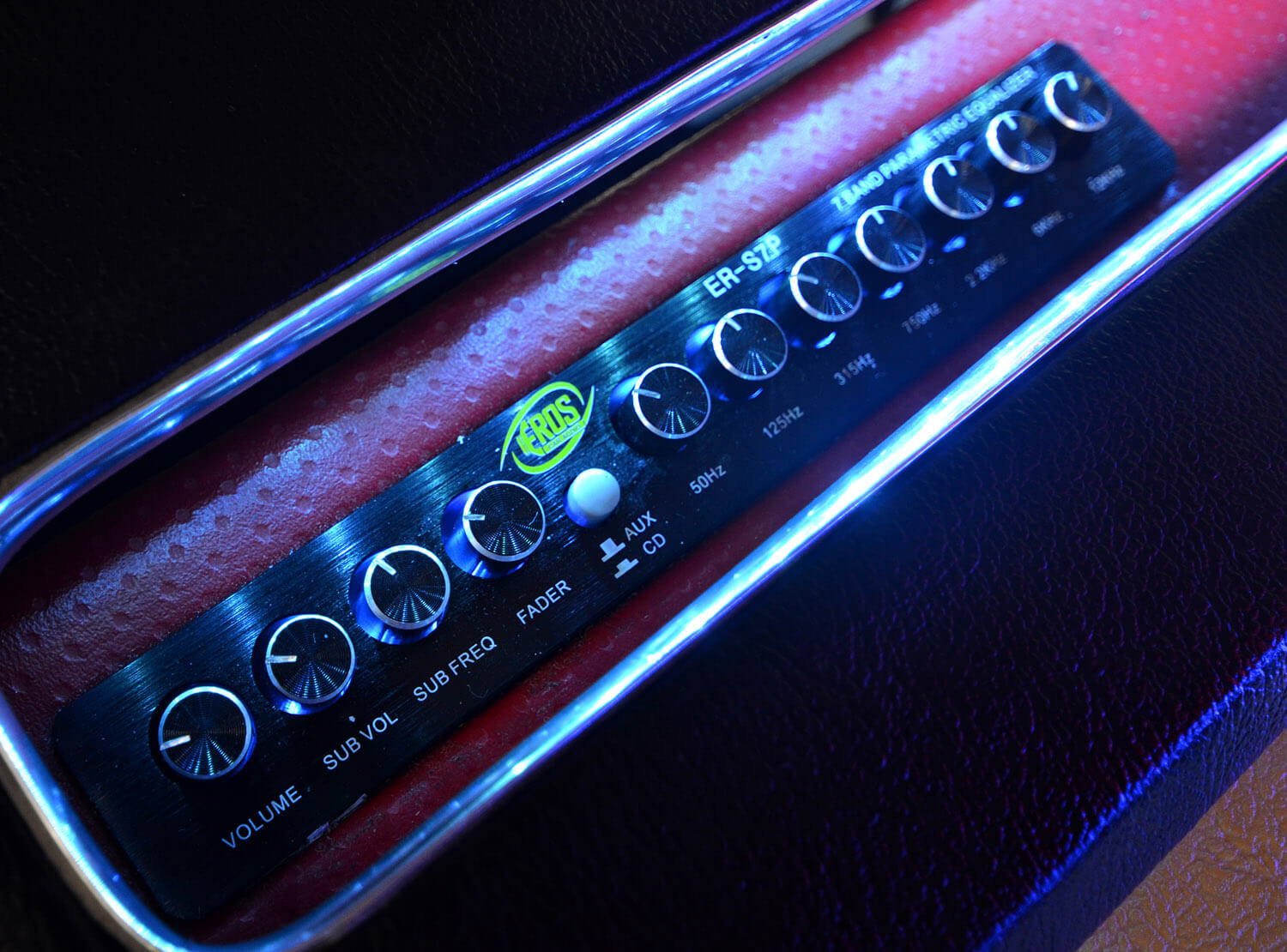 Pemproses digital Eros model ER5-DSP08 memastikan setiap titik frekuensi talaan dapat difahami dengan mudah. Berbeza dengan EQ yang dibina dalam pemain, pemproses sekunder selalunya memiliki pilihan mod talaan yang lebih luas dan teliti. Dari sini, seunit amplifier 4 saluran Eros ER-6004 dipasang untuk menguasakan set komponen Eros 6” Eros ER-5850 yang terdiri dari 2 unit mid bass dan juga 2 unit tweeter yang dipasangkan di bahagian hadapan Hilux.