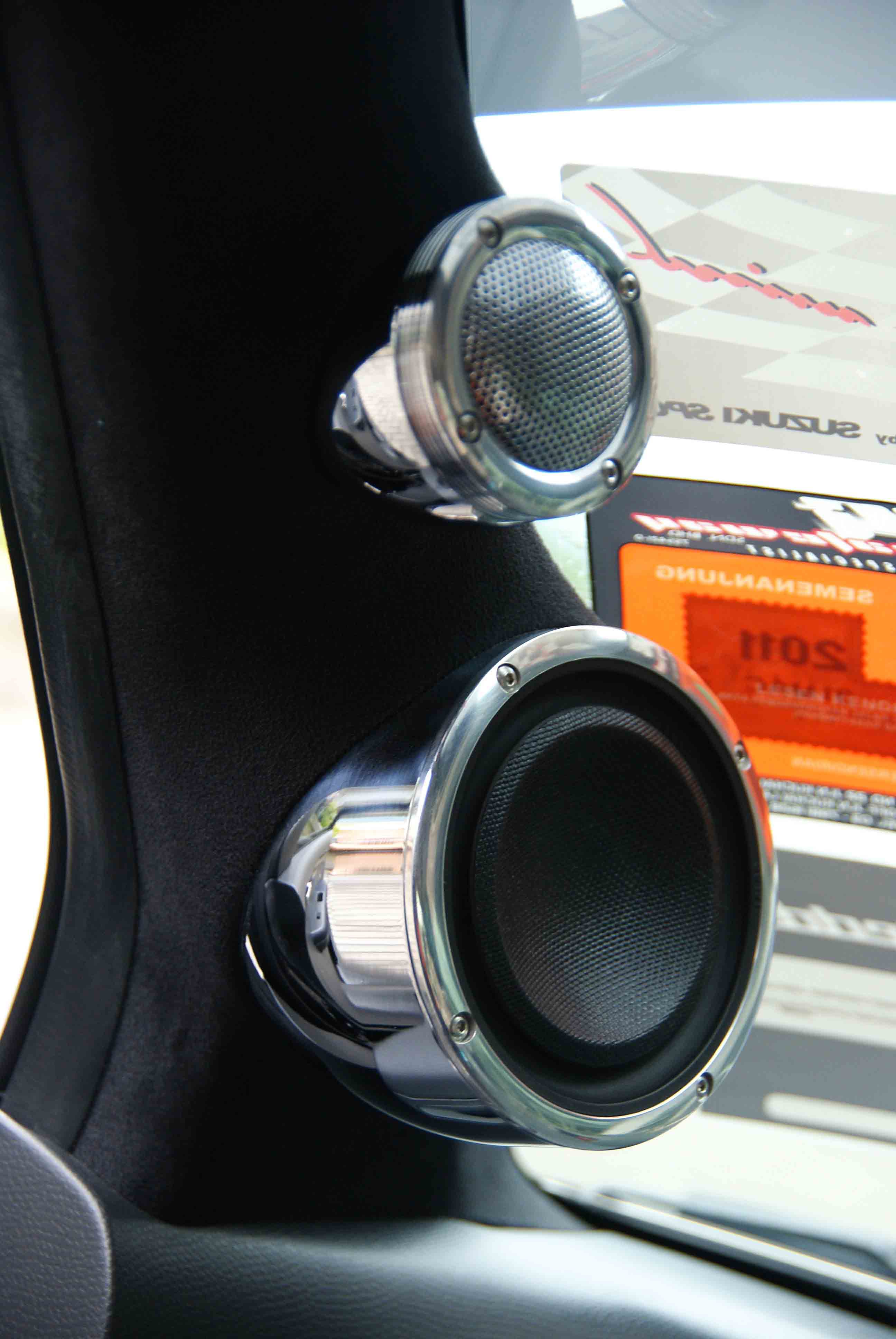 Posisi pemasangan sistem 3 hala ini dibuat sebagaimana lazim iaitu tweeter dan mid range dipasang pada pillar A. Memandangkan pillar Swift ini sekecil saiz kereta, perumah pillar custom dibuat bagi menempatkan speaker tersebut. Hasil yang boleh dilihat ialah kerja kemas bagi menampung sejumlah speaker yang agak berat jika menggunakan pillar aftermarket.