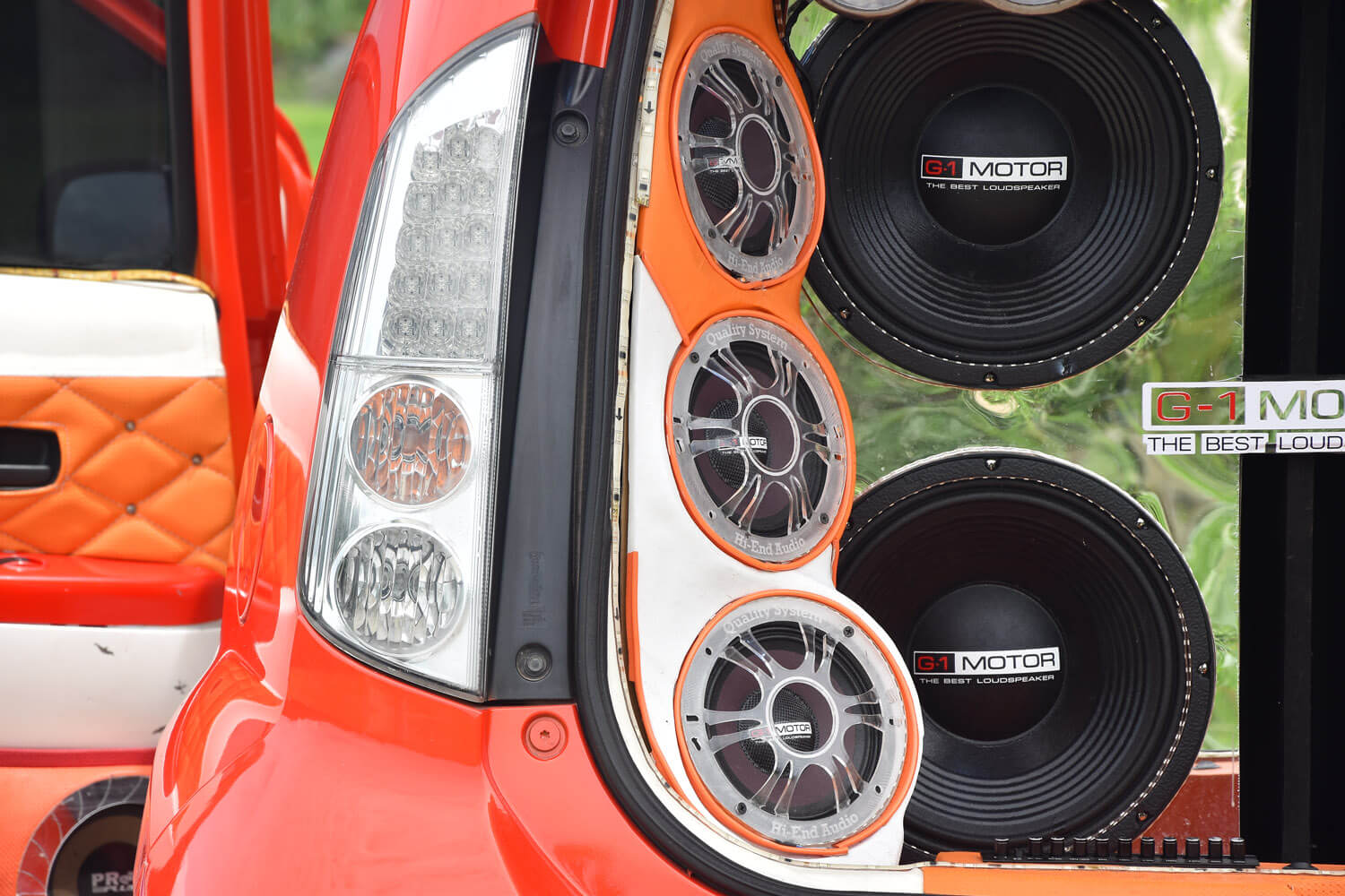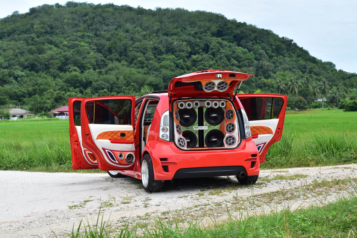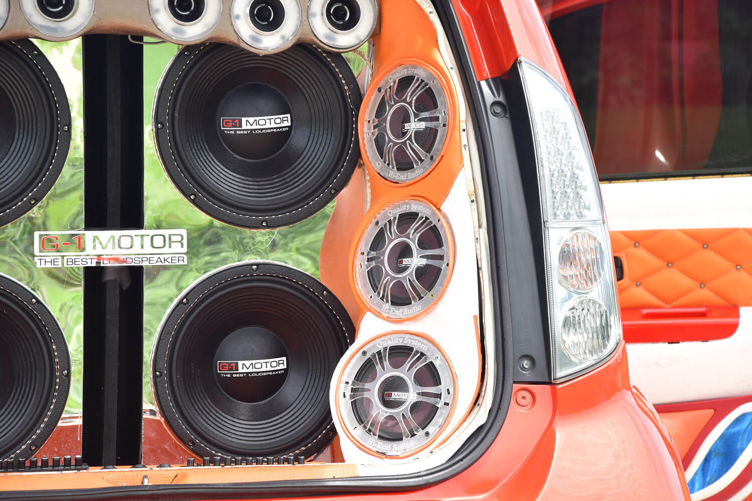 Bagi melengkapi sistem audio Myvi ini, saudara Agon telah memasangkan 4 unit woofer GI Motor yang dikuasakan oleh amplifier monoblock G1 Motor. Selain itu, beberapa produk audio tambahan lain turut digunakan termasuk power capacitor dan crossover Audio Quart untuk memantapkan lagi bunyi yang dihasilkan. Apa yang menakjubkan, setiap speaker dan woofer telah disusun dengan kemas.