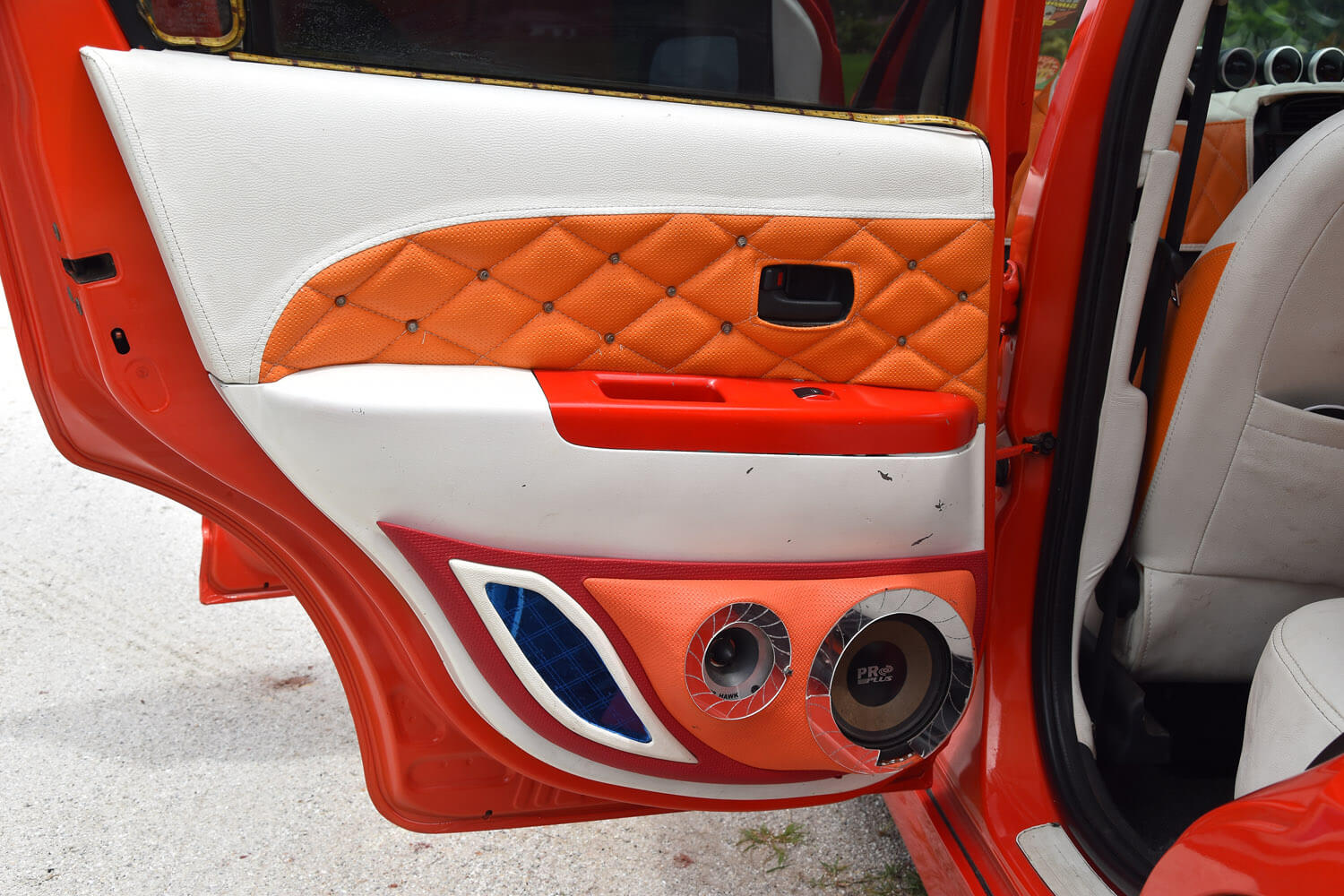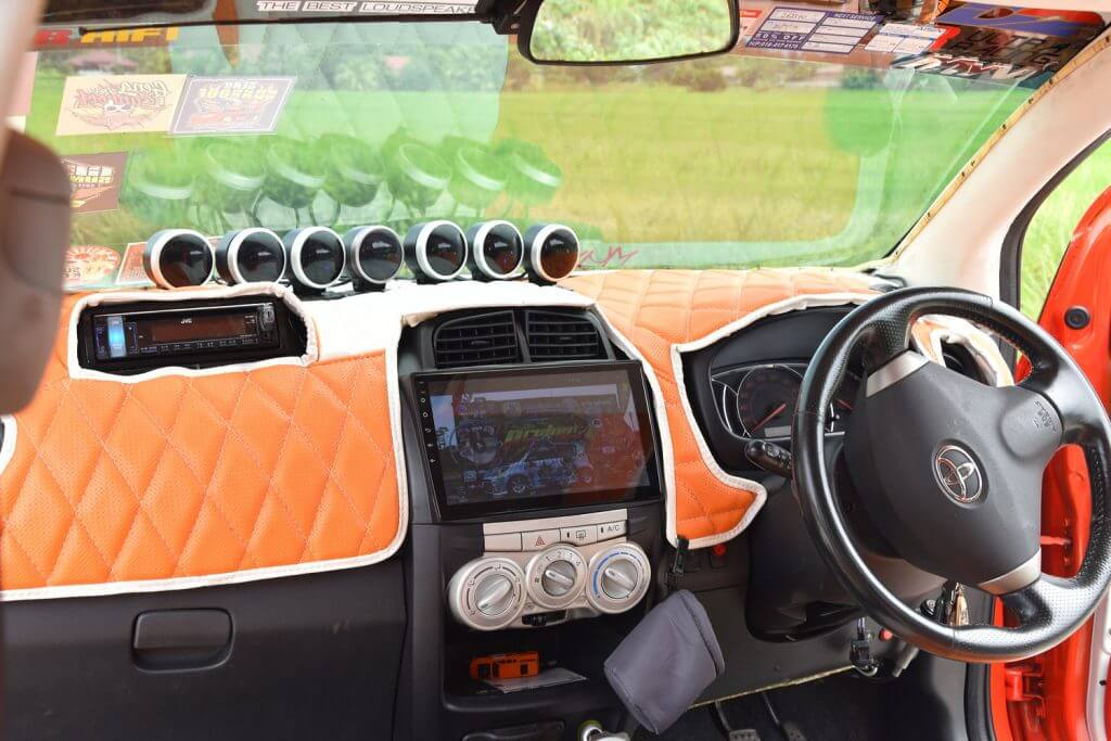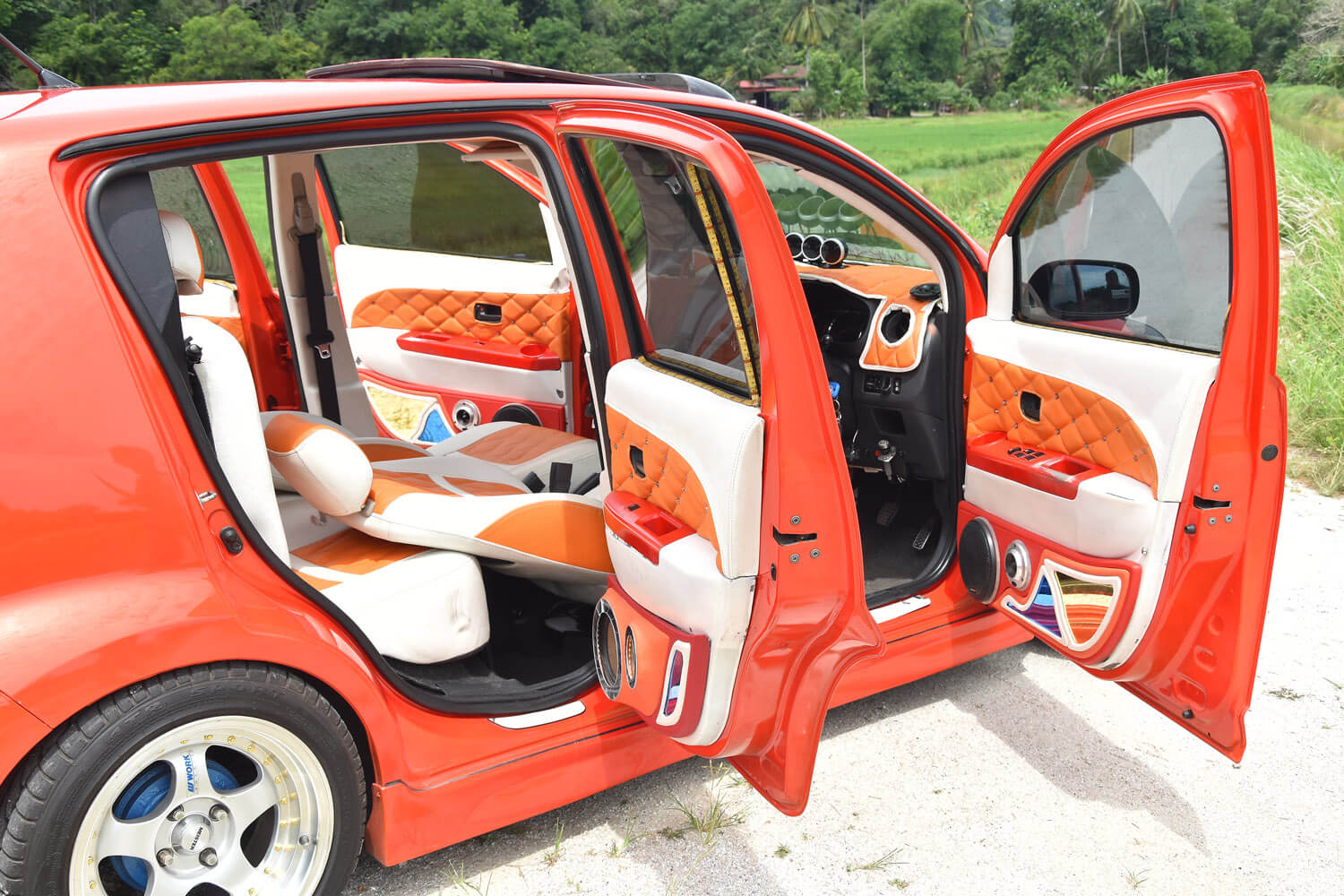 Bahagian dalam Myvi juga tidak kalah dengan sistem audio yang dipasangkan di bahagian belakang. Menggunakan style VIP dengan padanan warna oren dan putih, ia menyerlahkan lagi kekemasan Myvi ini. Saudara Agon yang juga salah seorang ahli Myva Team dan Sungai Petani Audio Club ini memang arif tentang pemasangan audio yang tepat untuk keretanya.