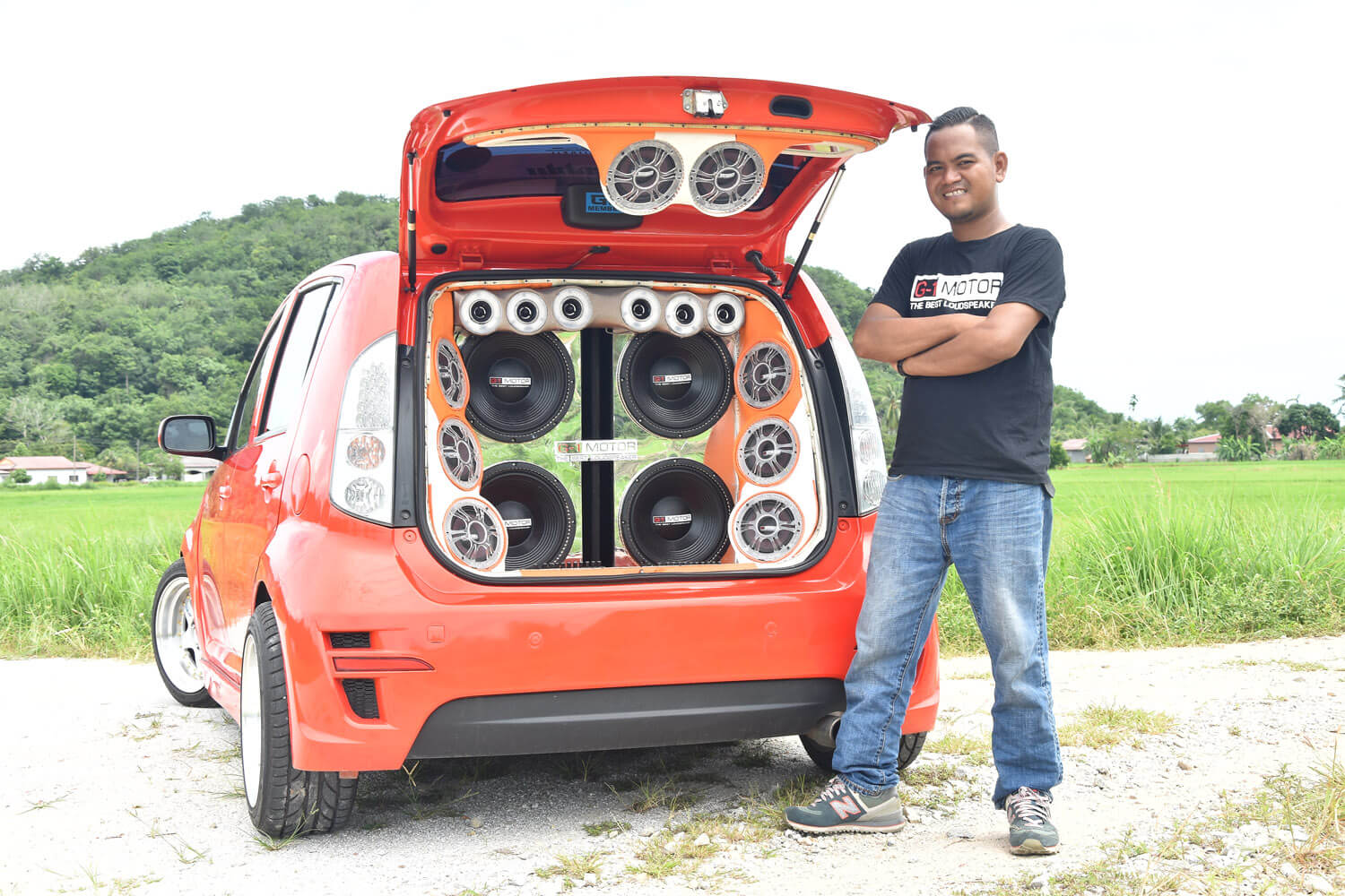 “Mula-mula main Proton Saga. Suka-suka dengar… lepas tu, kereta Perdana. Masuk box double. Kemudian, upgrade Viva dan sekarang, kereta Myvi. Dulu main SPL, sekarang main main P.A pulak,” sambung saudara Agon yang juga pemilik kedai Espian Car Audio Team.