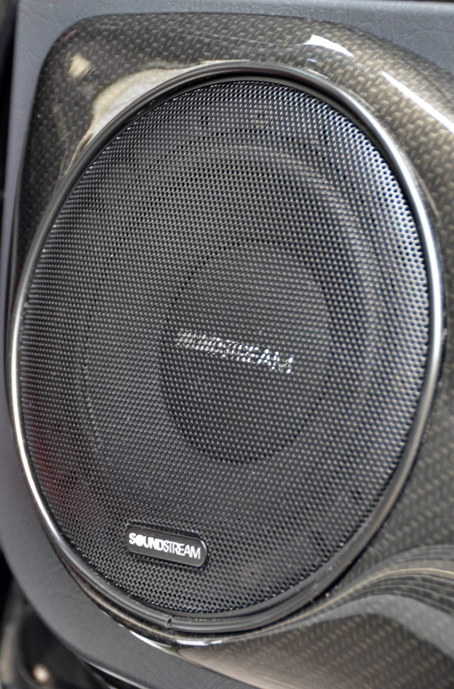 Speaker ini dipasangkan pada perumah buatan khas dengan pemegang gentian karbon. Sebenarnya, ia diperbuat dari bahan gentian kaca yang disadur dengan efek gentian karbon. Kaedah yang sama digunakan pada bahagian pillar depan yang menempatkan 2 unit tweeter komponen tadi. Walaupun ia dibuat custom, pillar ini tampak seperti produk yang dijual dengan meluas.