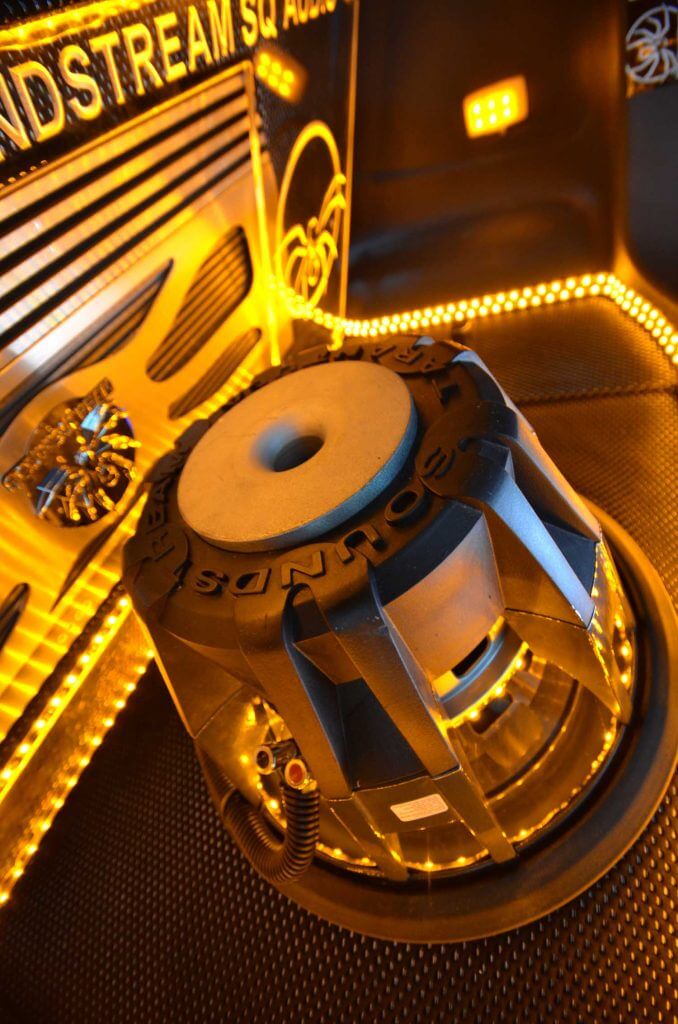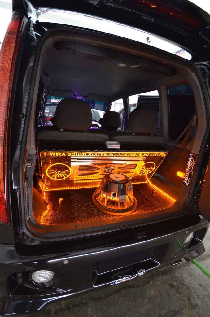 Setelah semuanya lengkap dipasangkan, bahagian but belakang yang menempatkan woofer dan amplifier dikemaskan penampilannya. Amplifier yang bersandar di bahagian tempat duduk belakang dilapiskan dengan perspek nipis dan dikelilingi LED kuning. Ringkas dan tidak keterlaluan. Hasil kerja keseluruhan Kenari ini masih layak menjadikan kereta ini sebagai kenderaan kegunaan harian.