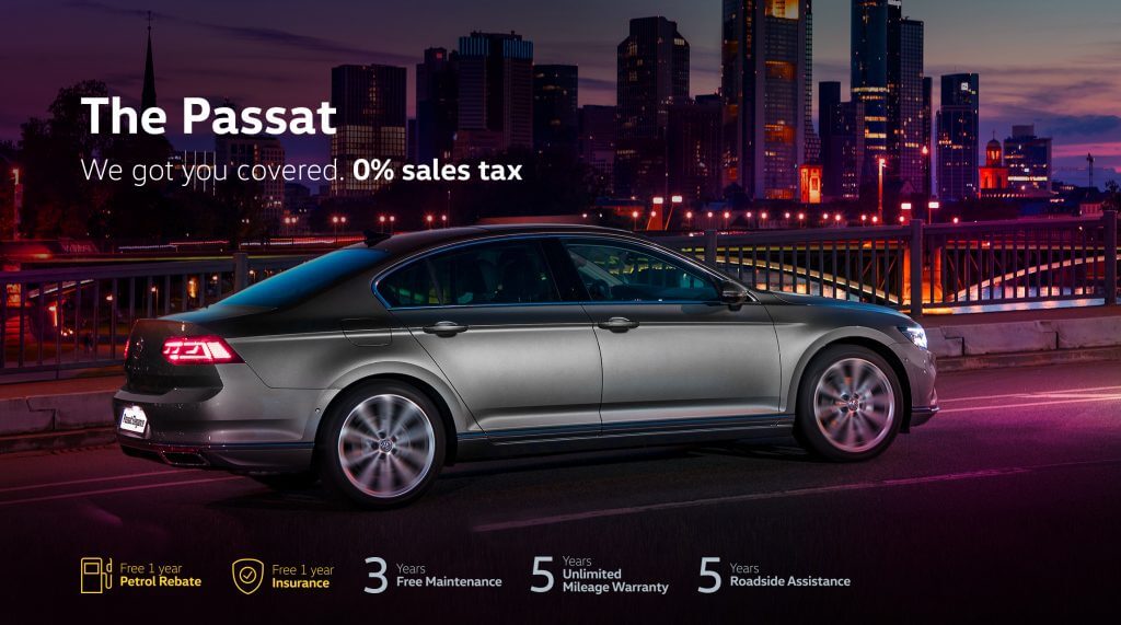 Tawaran ke atas Passat Elegance dan Passat R-Line telah dilanjutkan. Pelanggan kini akan menikmati insurans percuma selama setahun bernilai RM5,500 dan rebat petrol percuma juga selama setahun bernilai RM2,500. Mereka yang membuat tempahan menerusi Volkswagen eShowroom akan menikmati rebat dalam talian tambahan sebanyak RM3,500 sekali gus boleh berjimat sehingga RM11,500.