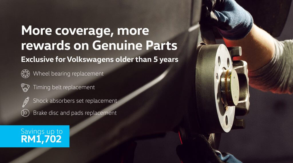 Para pemilik kenderaan Volkswagen berusia lebih lima tahun boleh terus memanfaatkan tawaran istimewa Repair Packages melibatkan penyerap hentak hadapan dan belakang, cakera brek hadapan dan belakang, roda penggalas depan belakang serta tali sawat pemasaan mulai bulan ini.