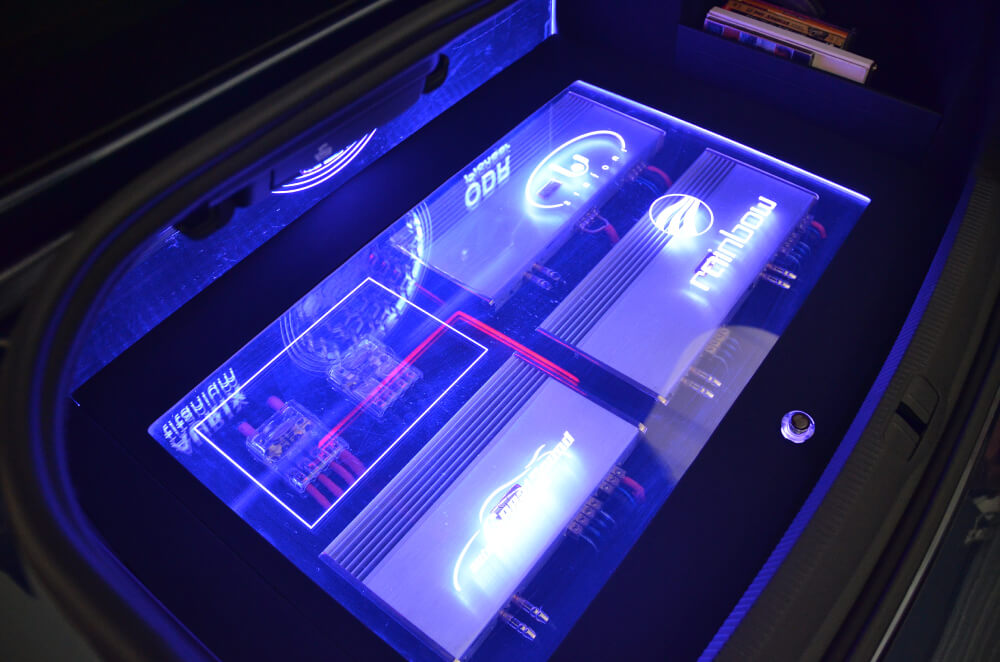 Kemasan di dalam but kereta ini juga sesuatu yang menarik untuk diceritakan. Jarang sekali sebuah kereta baru diubahsuai dengan sebegini drastik. Penempatan peralatan seperti amplifier, woofer dan pemproses dilakukan dengan kerjatangan yang kreatif. Semuanya disusun rapi dan ditutup dengan perspek jernih pada permukaannya. Penggunaan neon pelbagai warna menjadikan keseluruhan but ini lebih berseri setiap kali dinyalakan pada waktu malam.