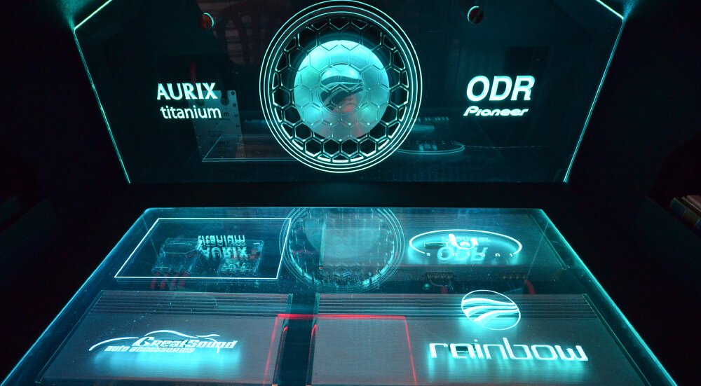 Pemproses bertaraf 5 bintang ini kemudiannya digandingkan dengan amplifier Sinfoni dan speaker Rainbow. Cukup mantap bak Ferrari bertemu Lamborghini dan McLaren. Lebih menarik lagi, kesemua peralatan ini dipasangkan mengikut spesifikasi OEM. Komponen mid, di bahagian depan yang hanya kelihatan 2 unit tweeter Rainbow bertenggek di atas pillar A. Mid bass 6” dan mid range 4”, kedua-duanya jenama Rainbow diletakkan tersorok di bahagian panel pintu tetapi sudah tentulah dengan ‘mounting’ yang diperkemaskan terlebih dahulu. Gandingan komponen aktif ini digabungkan dengan pembekalan kuasa oleh amplifier Sinfoni Amplitude 50.4x. Tweeter tadi pula mendapat suntikan dari amplifier Sinfoni Amplitude 90.2x, amplifier 2 saluran dengan keluaran kuasa 90watt RMS.