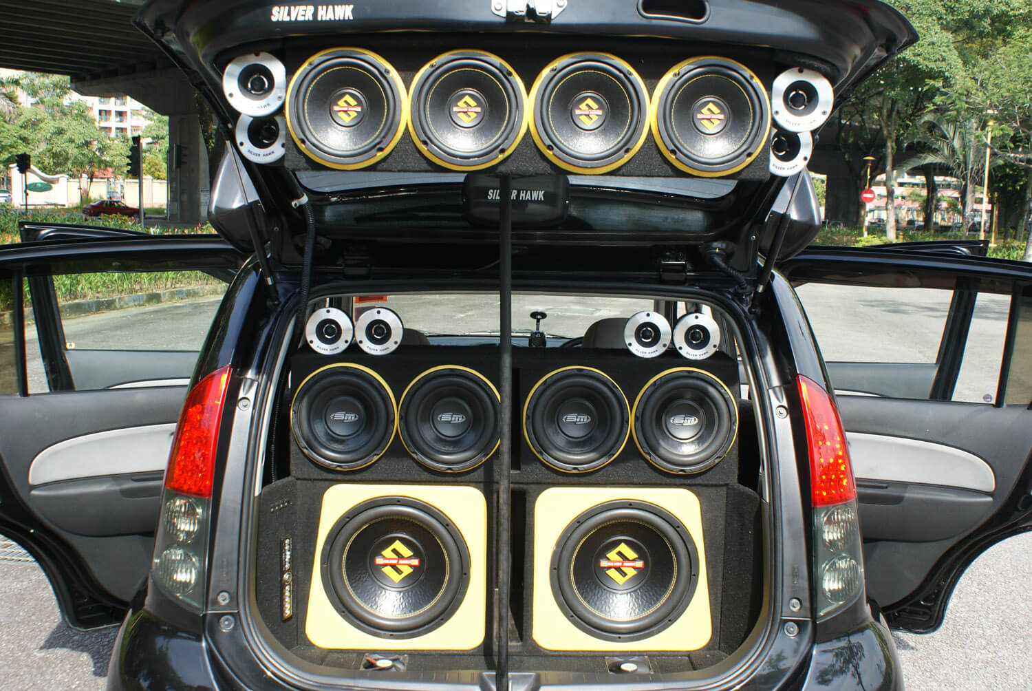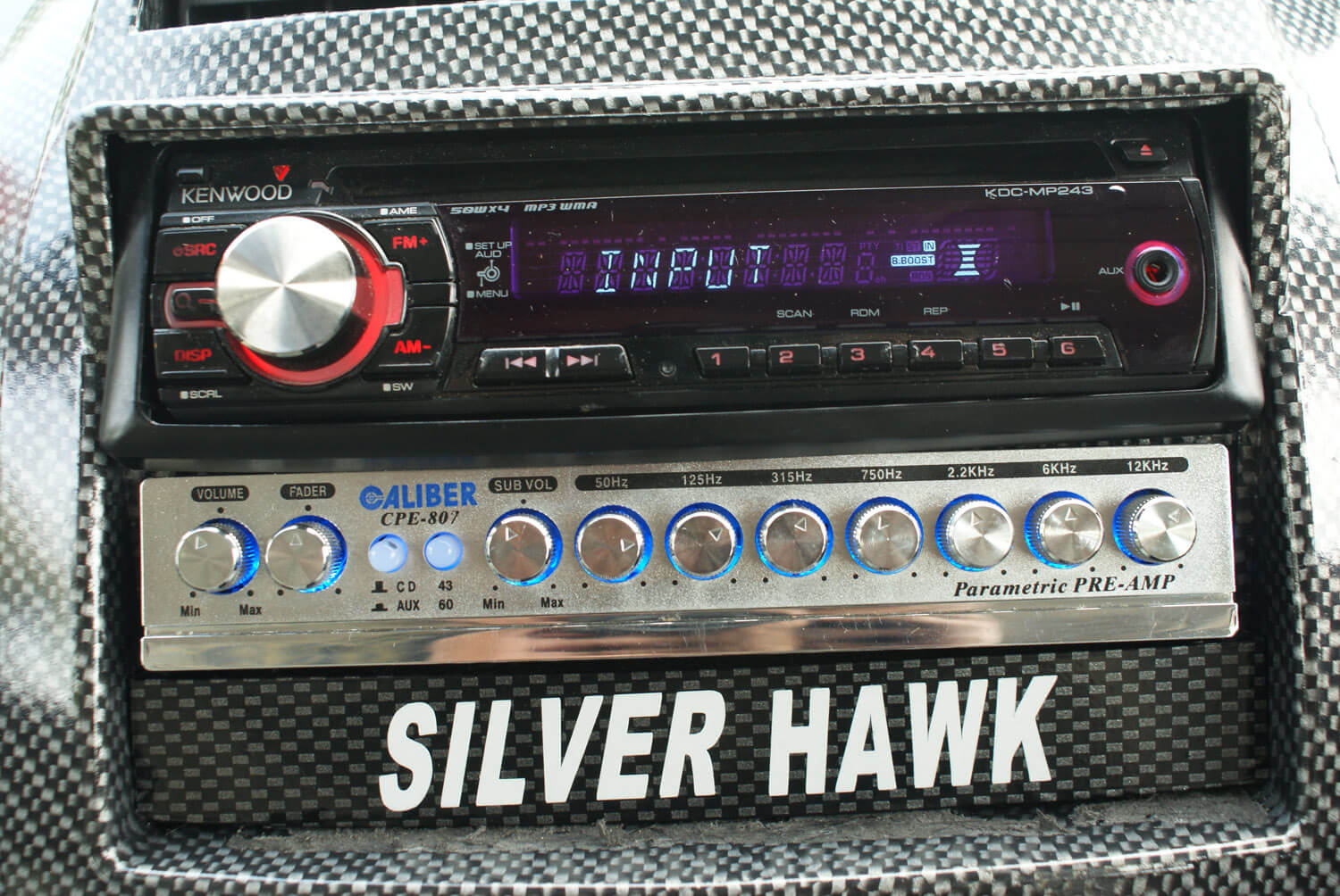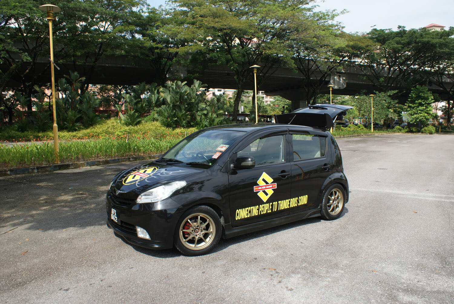 Myvi berwarna serba hitam dengan kelengkapan audio dari Silver Hawk ini baru sahaja setahun berjinak-jinak ketika kisahnya disiarkan bertahun-tahun dahulu. Walaupun baru setahun, Angah atau nama sebenarnya Mohammad Ruzaimi berjaya mengisi ruang kereta dengan sistem audio. Jenama yang dipilih pun bukan calang-calang. Pastinya beliau sudah bertanya terlebih dahulu dan merujuk kepada mereka yang pakar khususnya En. Alkaf yang juga merupakan pakcik saudara Angah.