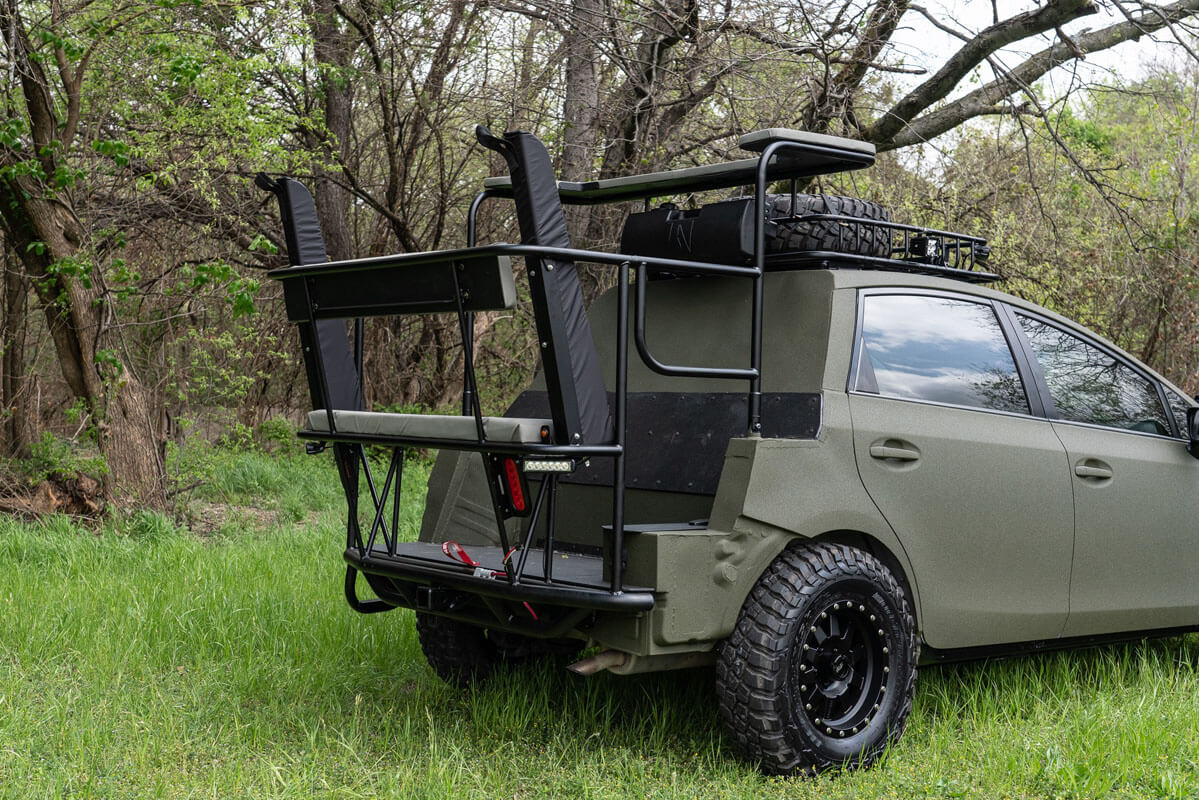 Starwood Customs telah mengeluarkan sebahagian besar bahagian standard kereta ini dan menggantikannya dengan platform khusus untuk berburu. Kelihatan agak janggal tetapi ia sangat praktikal. Di bahagian ini, pemilik atau pemburu boleh meletakkan senjata yang digunakan untuk memburu.