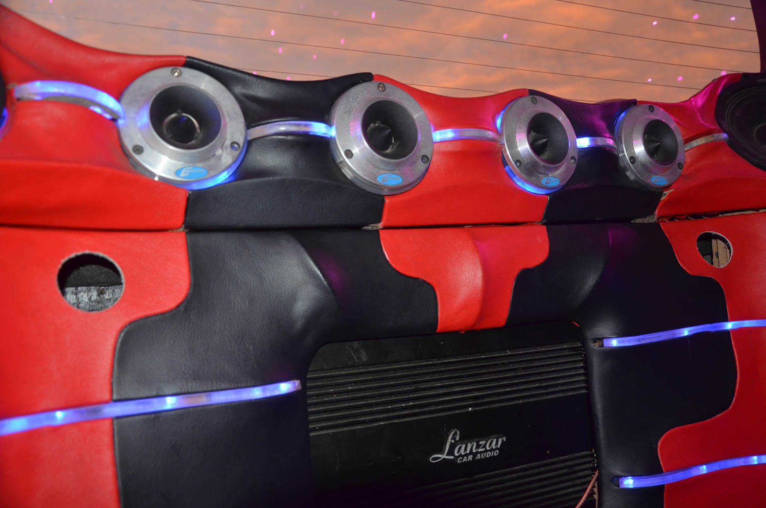 Sistem audio ini turut merangkumi bahagian dalam dan bukan sekadar bahagian kargo (ruang letak barang) semata-mata. Dimulakan dengan pemain dari JVC, sistem audio ini dilengkapi sebanyak 14 unit mid bass 6“ King Audio, 14 unit horn tweeter King Audio, 2 unit mid 8” dan 4 unit woofer 12” King Audio. Manakala kesemua unit speaker ini dikuasakan 2 unit amplifier 4 channel dan 2 unit amplifier monoblock serta dipasangkan bersama aksesori audio tambahan iaitu 2 unit pre-amp. Barisan speaker ini pula dibahagikan kepada dua 3 bahagian; kabin pemandu, belakang dan kargo. Bagi memastikan bekalan kuasa cukup untuk memacu sistem audio, Iwan telah menggunakan 3 unit bateri N70 serta kapasitor 6.0.