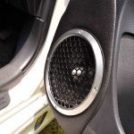 Pemilihan sistem 3 hala memang tepat jika anda mahukan sebuah sistem kualiti bunyi yang terbaik. Namun pemilihan speaker juga tidak kurang pentingnya. Justeru, gandingan unit dari Audio System dipilih dari model panel pintu mid 6” HX165 Phase MKII, unit pillar mid 4” HX100 Phase dan juga 2 unit tweeter yang berkongsi perumah dengan mid 4” tadi. Pemasangan mid dan tweeter tadi dibuat pada pillar custom yang kemudiannya dibalut dengan kulit baldu lembut dan jahitan yang seragam. Sesetengah installer tidak menggemari pemasangan penutup speaker namun sebagai langkah keselamatan, mid kereta ini dilindungi jaring penebat supaya bahagian konnya dilindungi.