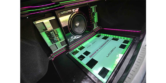 Susunan amplifier dan kekotak woofer dalam but Vios ini memang cukup sempurna dan senada. Penggunaan garis neon halus di sekeliling but dan juga tempelan dinding belakang yang kemas memastikan keseluruhan pakej kereta ini ditempa dengan tema ICE yang berkualiti.
